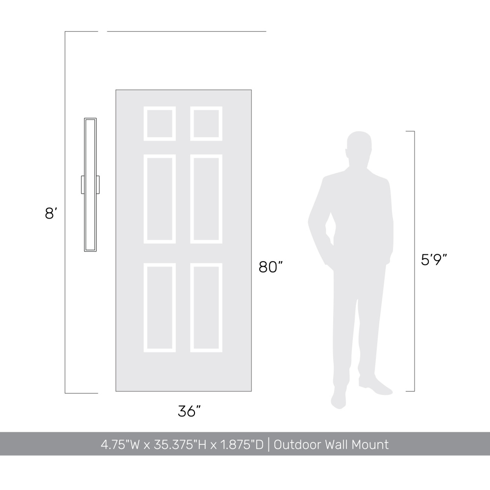 Elevate your exteriors with the Golden Lighting Obsidian Integrated LED 35in Outdoor Wall. This masterpiece showcases modern elegance, featuring a sleek, matte Sand Black finish that contributes to its minimalist allure. With no shade to distract, its clean lines exude architectural purity while offering an even wash of illumination, perfect for highlighting entryways and patios. The durable, powder-coated aluminum construction resists UV and corrosion, ensuring longevity in outdoor conditions. Designed for wet locations, this fixture operates flawlessly in exposed areas, making it ideal for outdoor settings. Overall Dimensions: 4.75"W x 35.38"H x 1.88"D. Integrated LED technology emits 1300 lumens and provides a choice of three color temperatures: warm 3000K, neutral 4000K, or crisp 6000K. Transform your outdoor ambiance with style and sophistication, backed by quality craftsmanship.