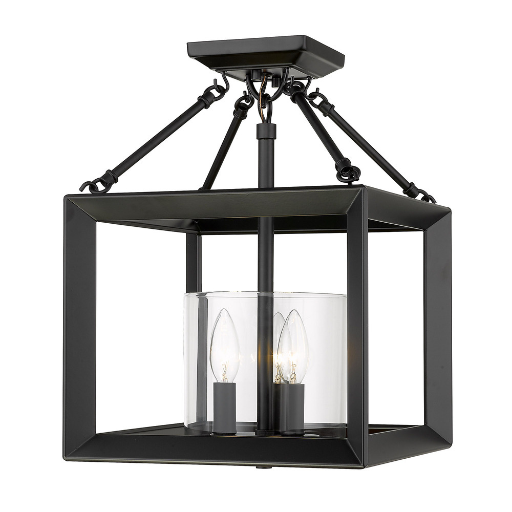 Golden Lighting Smyth 3-light 17"H Semi-Flush Mount in Matte Black and Clear Glass