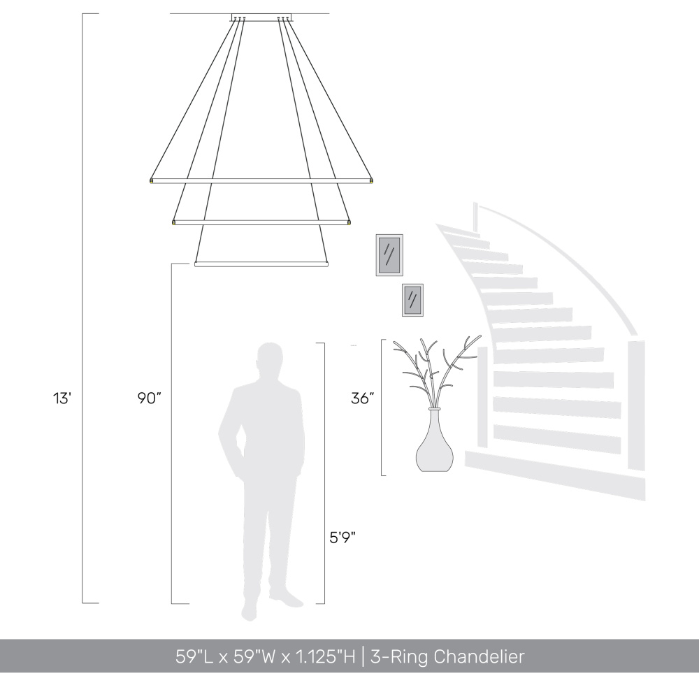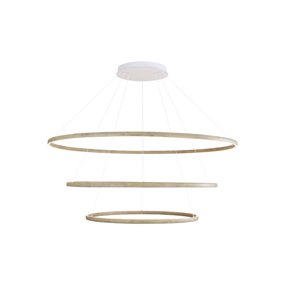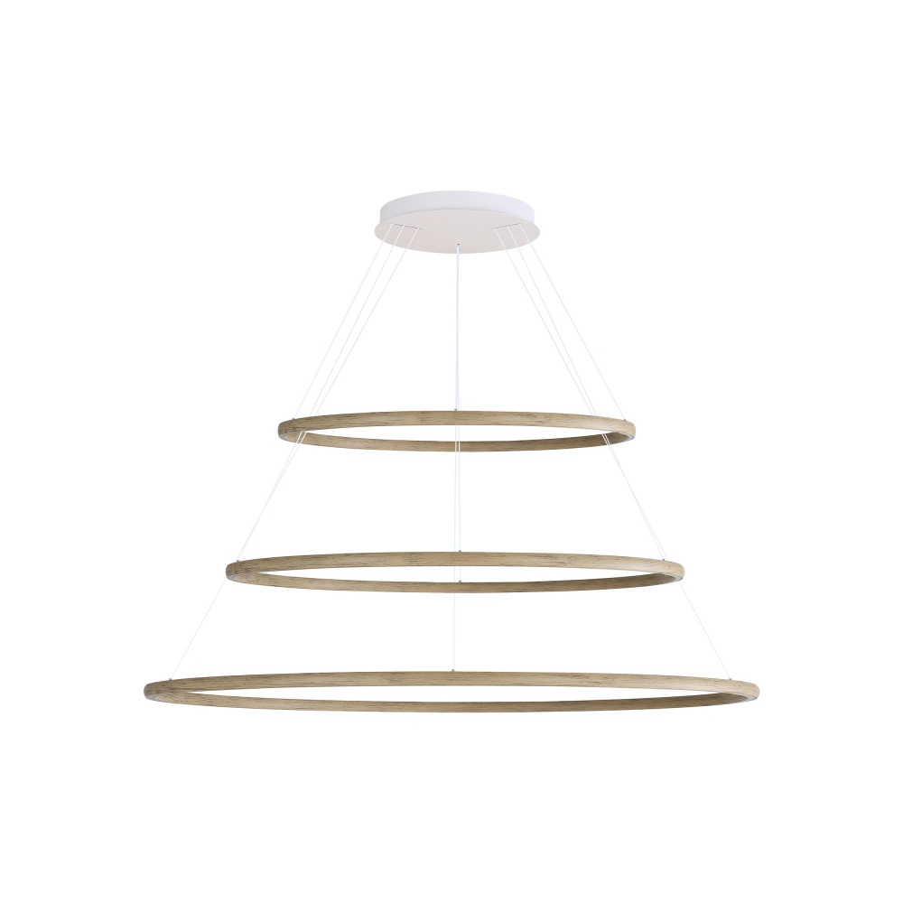 Bring modern elegance into your home with the Golden Lighting Veritas Integrated LED 59in 3-tier Chandelier in Driftwood. This chandelier showcases a sleek geometric design, creating a welcoming atmosphere in any space. The driftwood finish evokes the serene beauty of the coast, featuring soft, weathered tones that enhance its relaxed aesthetic. Ideal for dining rooms and foyers, this chandelier is dry location rated and easily accommodates angled ceilings with its adjustable height from 30" to 123". Overall Dimensions: 59"W x 1.13"H x 59"D. Enjoy brilliant illumination with integrated LED technology, delivering 15500 rated lumens at a warm 3000K glow. This light fixture complements both classic and contemporary settings, offering sophistication and functionality.