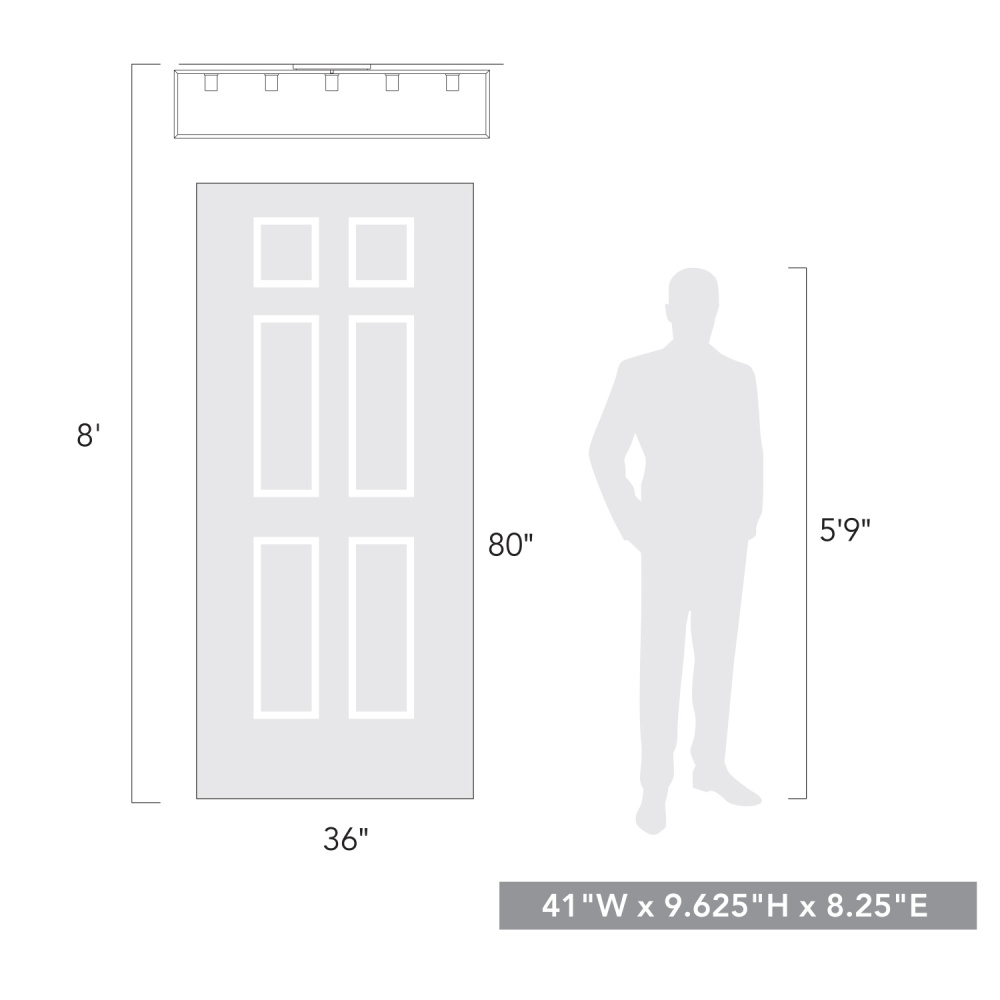 Bring industrial elegance into your home with the Golden Lighting Wesson 5-light Flush Mount. Featuring a robust open design, it creates a welcoming atmosphere in any room. With no shade, this fixture highlights its strong graphic quality and allows for expansive illumination. The bold, utilitarian aesthetic celebrates the charm of open spaces and is perfect for making a statement in low-ceiling areas. The Matte Black finish exemplifies understated elegance and complements various decors—from minimalist to contemporary. Ideal for low ceilings in hallways, closets, laundry areas, and bathrooms, this fixture is Damp Location Rated, making it suitable for covered spaces with occasional moisture. It requires 5 E26 Medium base bulbs (not included) with a maximum wattage of 100 per bulb, and the overall dimensions are 41"W x 9.63"H x 8.25"D. Elevate your space with the striking design and quality craftsmanship of the Golden Lighting Wesson. Perfect for those who appreciate a mix of function and vintage-inspired charm.