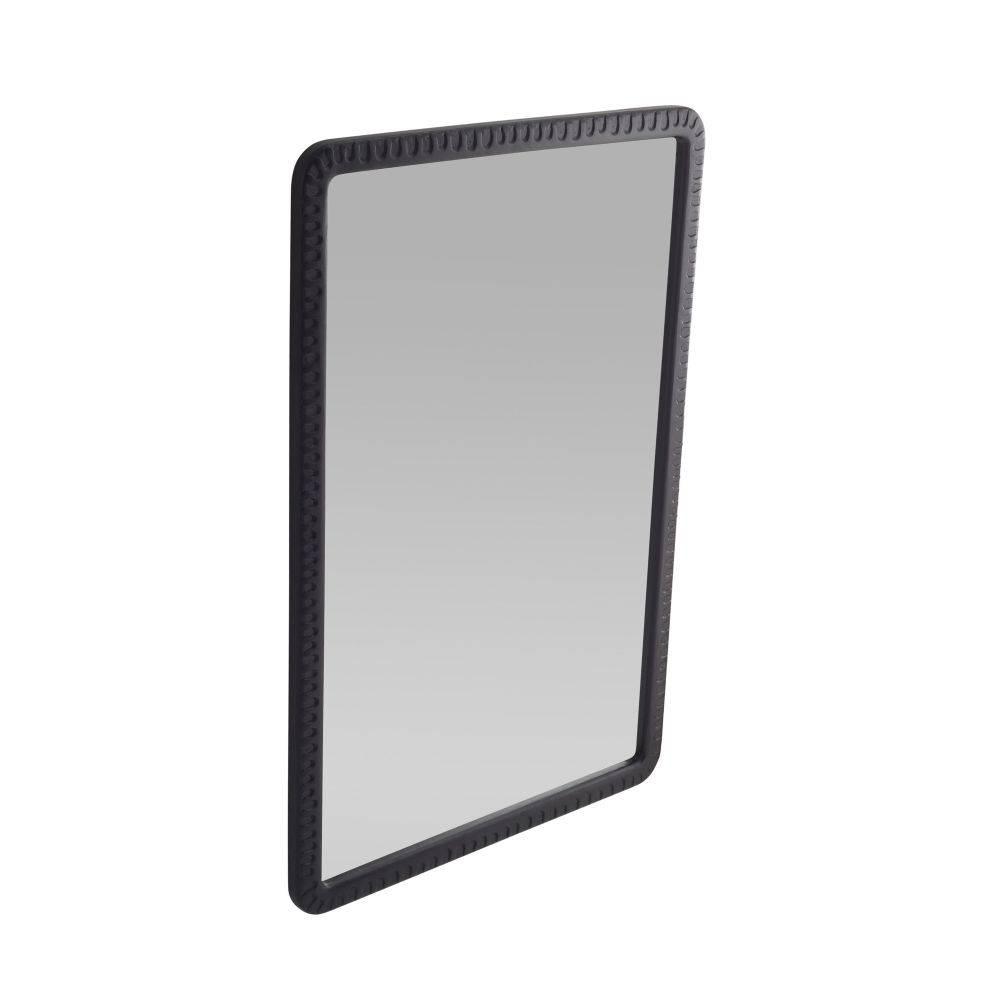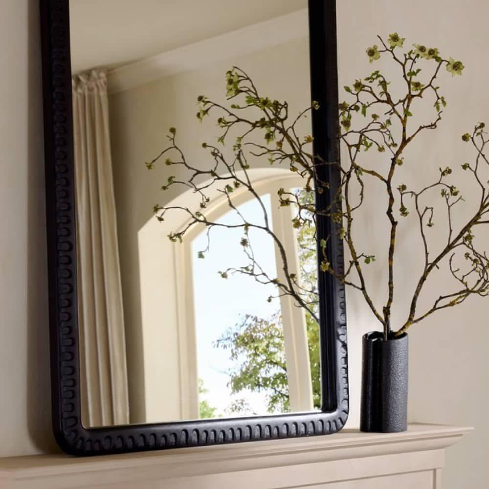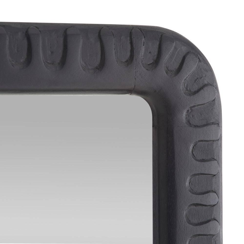 The rhythmic patterns of a vintage print lend an energetic texture to a frame of ebonized mango wood. This statement style was designed to catch the light in each subtle indentation. Can be hung both vertically and horizontally. Secured at the back with a cleat attachment.