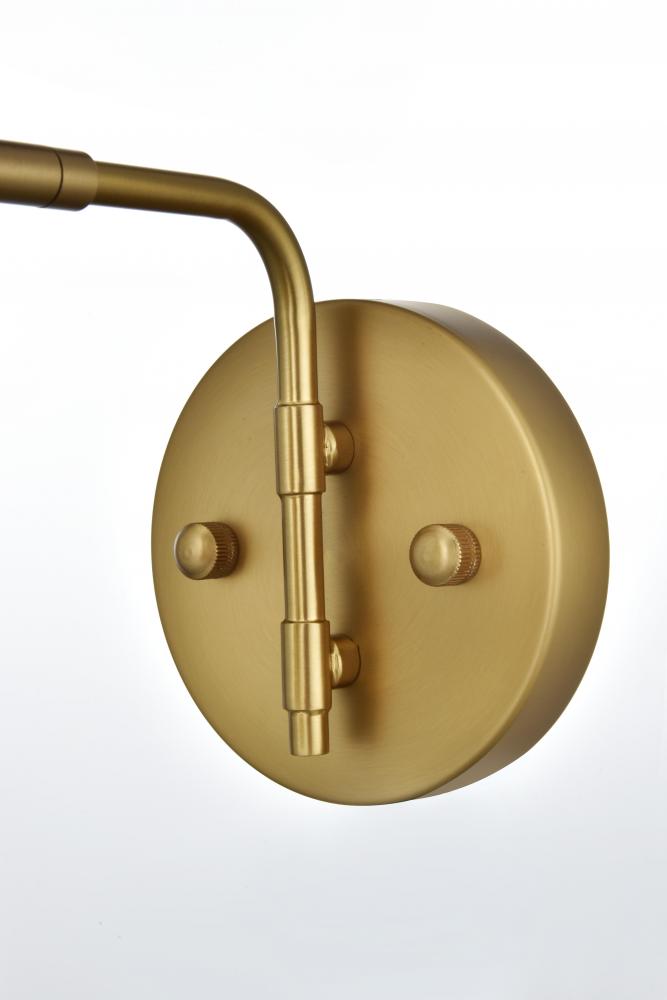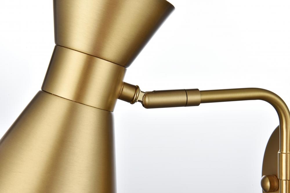 Illuminate your space with the brilliance of the Halycon Collection wall sconce. The cone dome creates a unique lighting and includes a dimmable feature that creates a calm mood. Available in a satin gold, chrome, black, and/or brass finish, this minimalistic piece will fit perfectly into your living room or bedroom. This product comes in a five or six inch length and requires one E26 socket. Light bulbs not included.