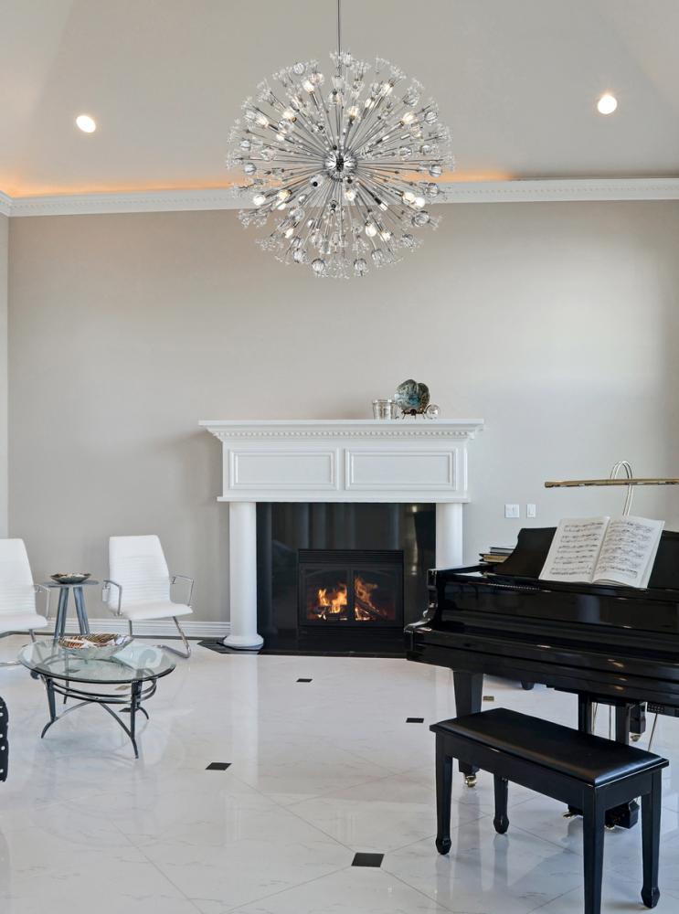 Features a striking sputnik-style shape with sparkling crystal accents for a luxurious modern touch.