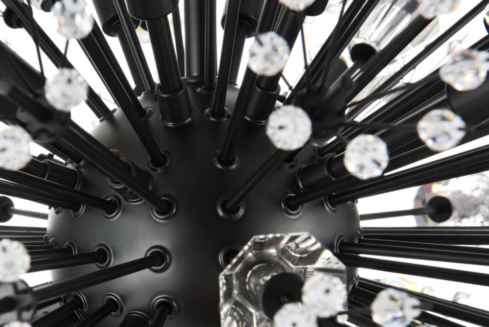 Features a striking sputnik-style shape with sparkling crystal accents for a luxurious modern touch.