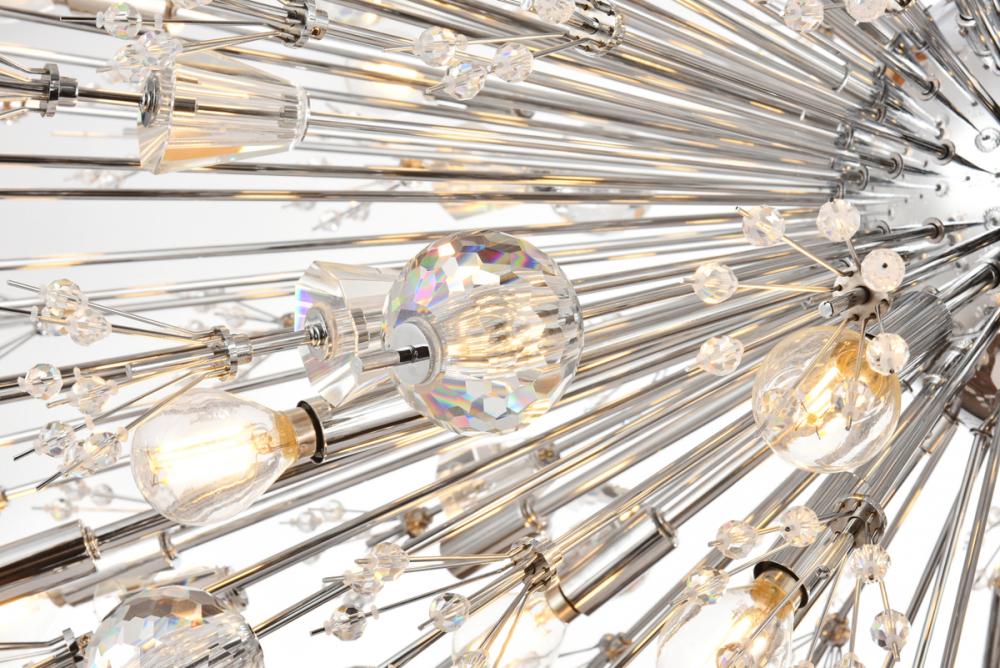 Features a striking sputnik-style shape with sparkling crystal accents for a luxurious modern touch.