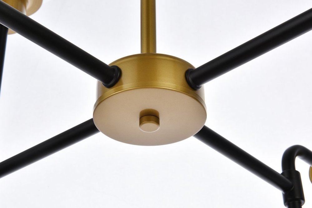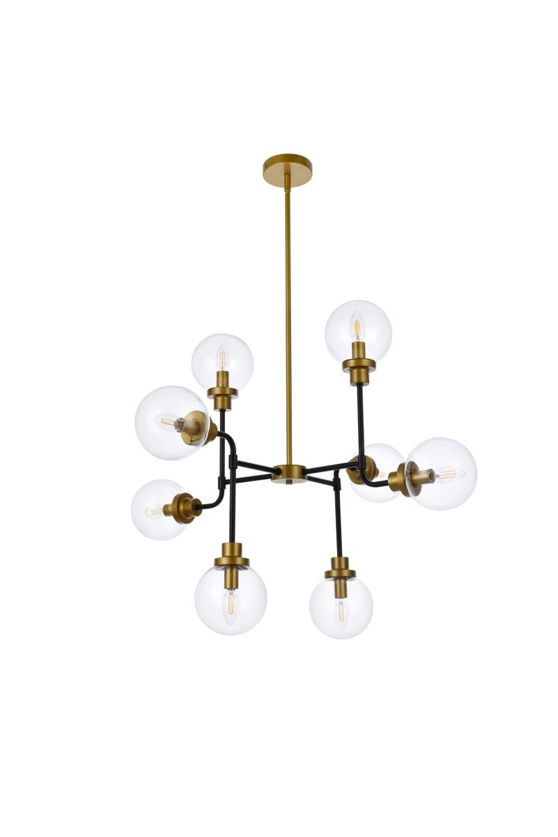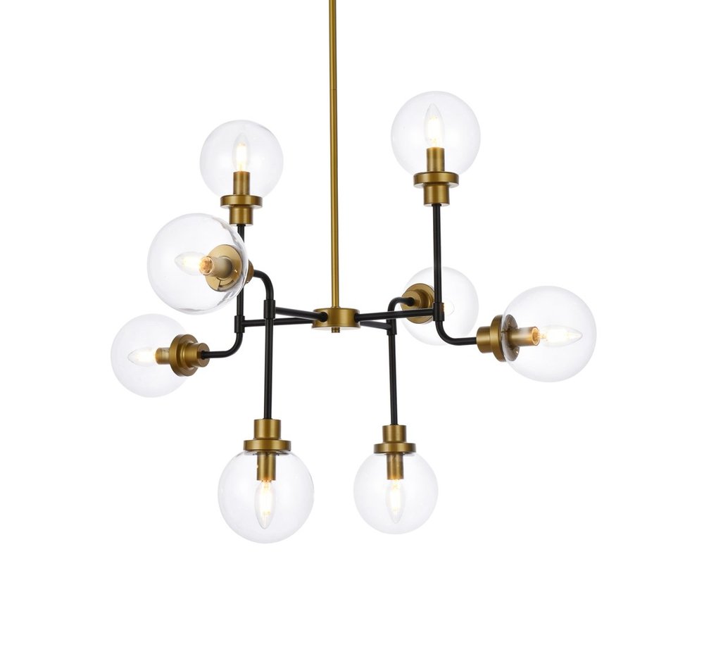 Elegant LD7039D36BRB - Hanson 8 lights pendant in black with brass with clear shade