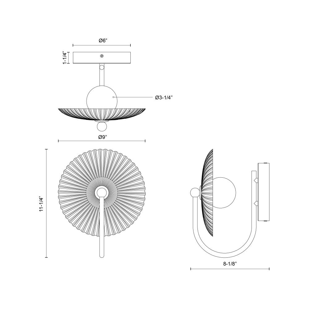 Hera 9-in Brushed Gold/Clear Ribbed Glass LED Wall/Vanity