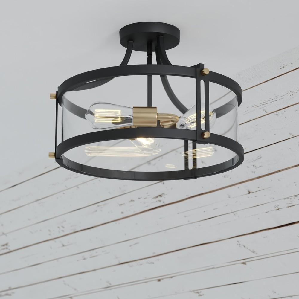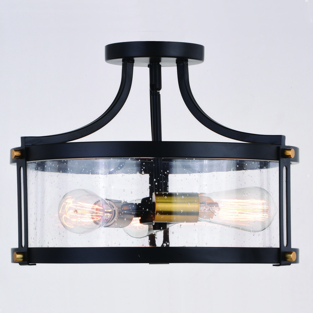 This modern soft industrial Holbrook collection brings a level of sophistication to a trendy farmhouse or urban style. The matte black and satin brass dual finish complements this look perfectly. Clear seeded glass encircles the framework giving the Holbrook true charm. Combine that with a vintage Edison style filament bulb to complete the look. Once you add this look to your home you’ll be pleasantly surprised as to how modern yet on trend your spaces will look.