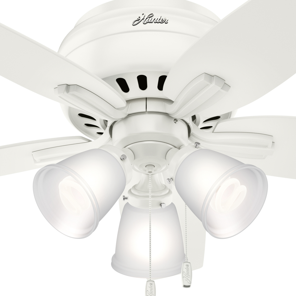 With its charming appearance, the Newsome low-profile ceiling fan with light will complement your casual design style. The clean line details throughout the fan body and blade irons work together to create a coherent design that will fit any small room with a low ceiling. The three-light fixture provides your ideal ambiance while the 42-inch blades are powered by a three-speed WhisperWind? motor delivering superior air movement and whisper-quiet performance so you get all the cooling power you want without the noise. The Newsome Collection offers you the freedom to choose from many different sizes, light kits, and other options to maintain a consistent look throughout every room in your home.