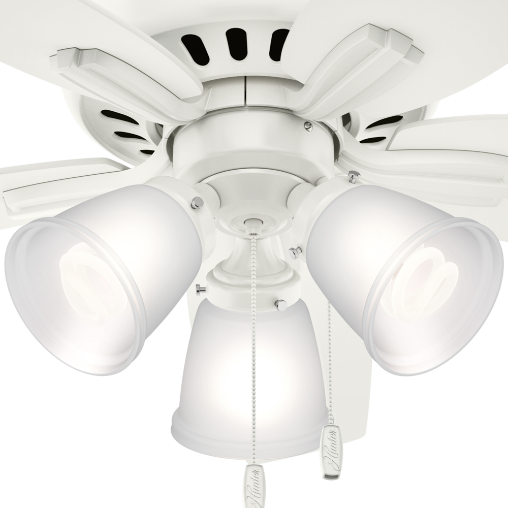 With its charming appearance, the Newsome low-profile ceiling fan with TrueLight™ technology will complement your casual design style. The clean line details throughout the fan body and blade irons work together to create a coherent design that will fit any small room with a low ceiling. The three-light fixture provides your ideal ambiance while the 42-inch blades are powered by a three-speed WhisperWind® motor delivering superior air movement and whisper-quiet performance so you get all the cooling power you want without the noise. The Newsome Collection offers you the freedom to choose from many different sizes, light kits, and other options to maintain a consistent look throughout every room in your home.