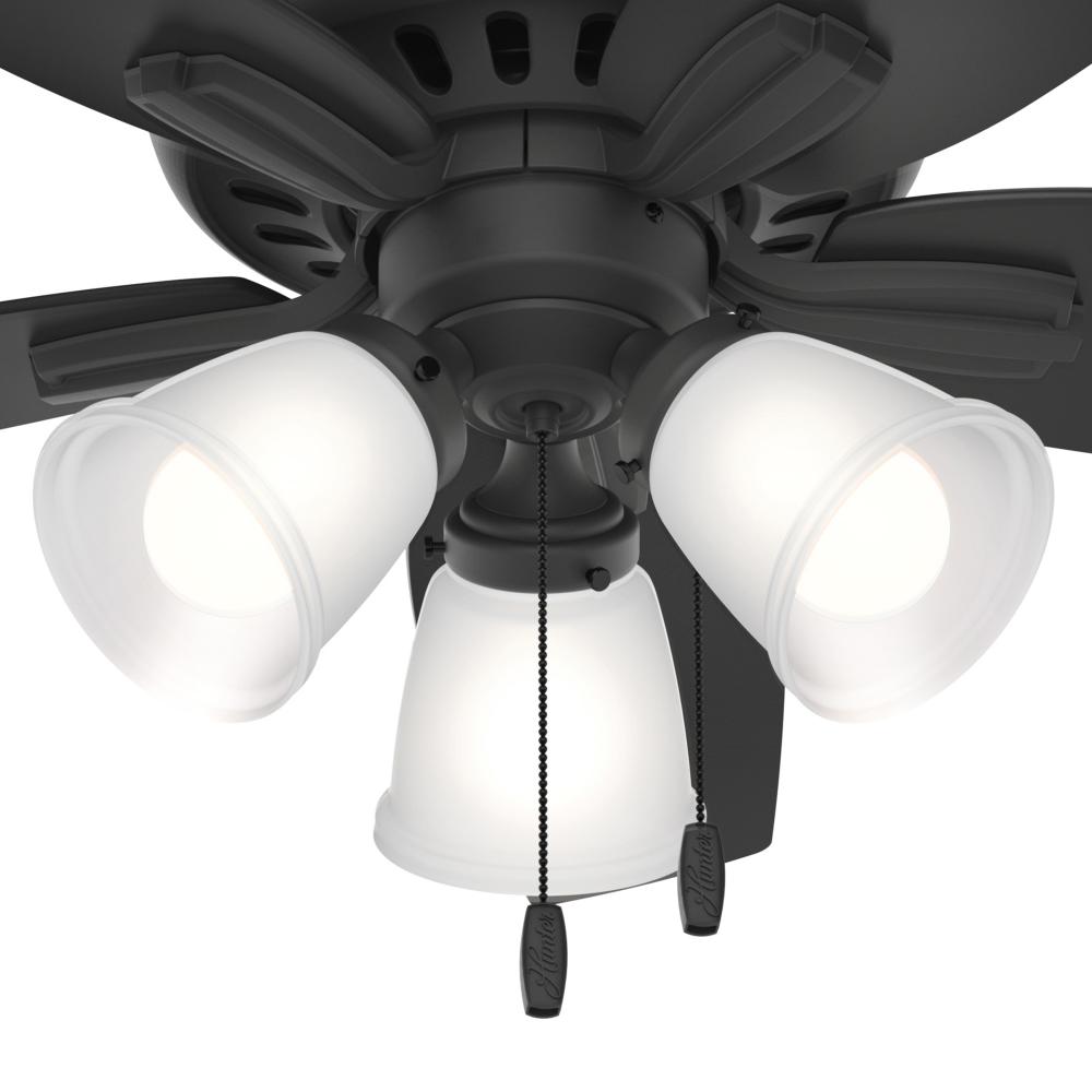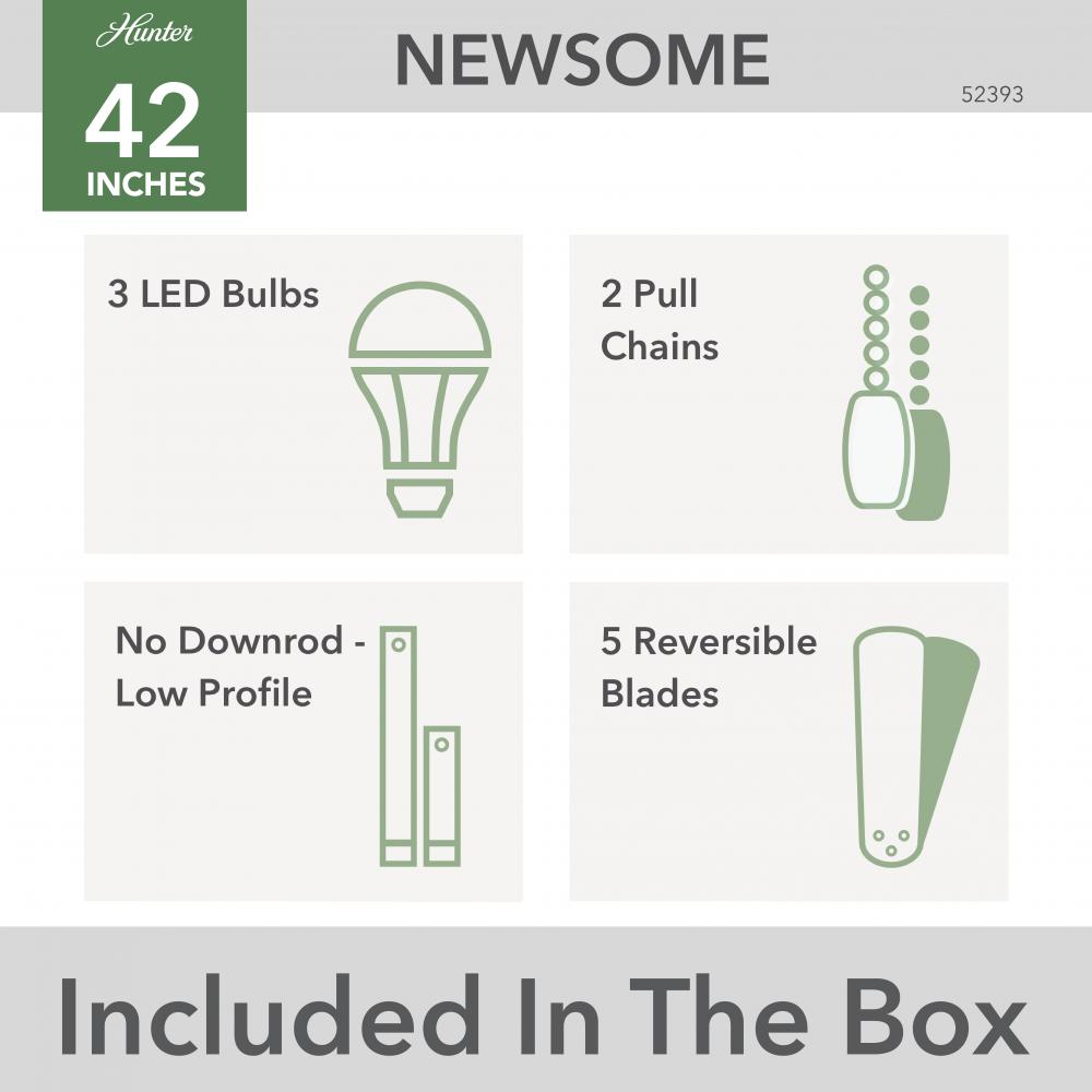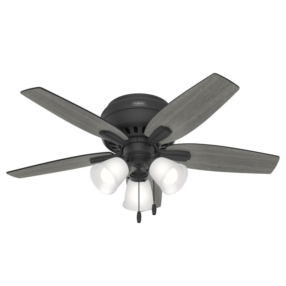 With its charming appearance, the Newsome low-profile ceiling fan with TrueLight™ technology will complement your casual design style. The clean line details throughout the fan body and blade irons work together to create a coherent design that will fit any small room with a low ceiling. The three-light fixture provides your ideal ambiance while the 42-inch blades are powered by a three-speed WhisperWind® motor delivering superior air movement and whisper-quiet performance so you get all the cooling power you want without the noise. The Newsome Collection offers you the freedom to choose from many different sizes, light kits, and other options to maintain a consistent look throughout every room in your home.