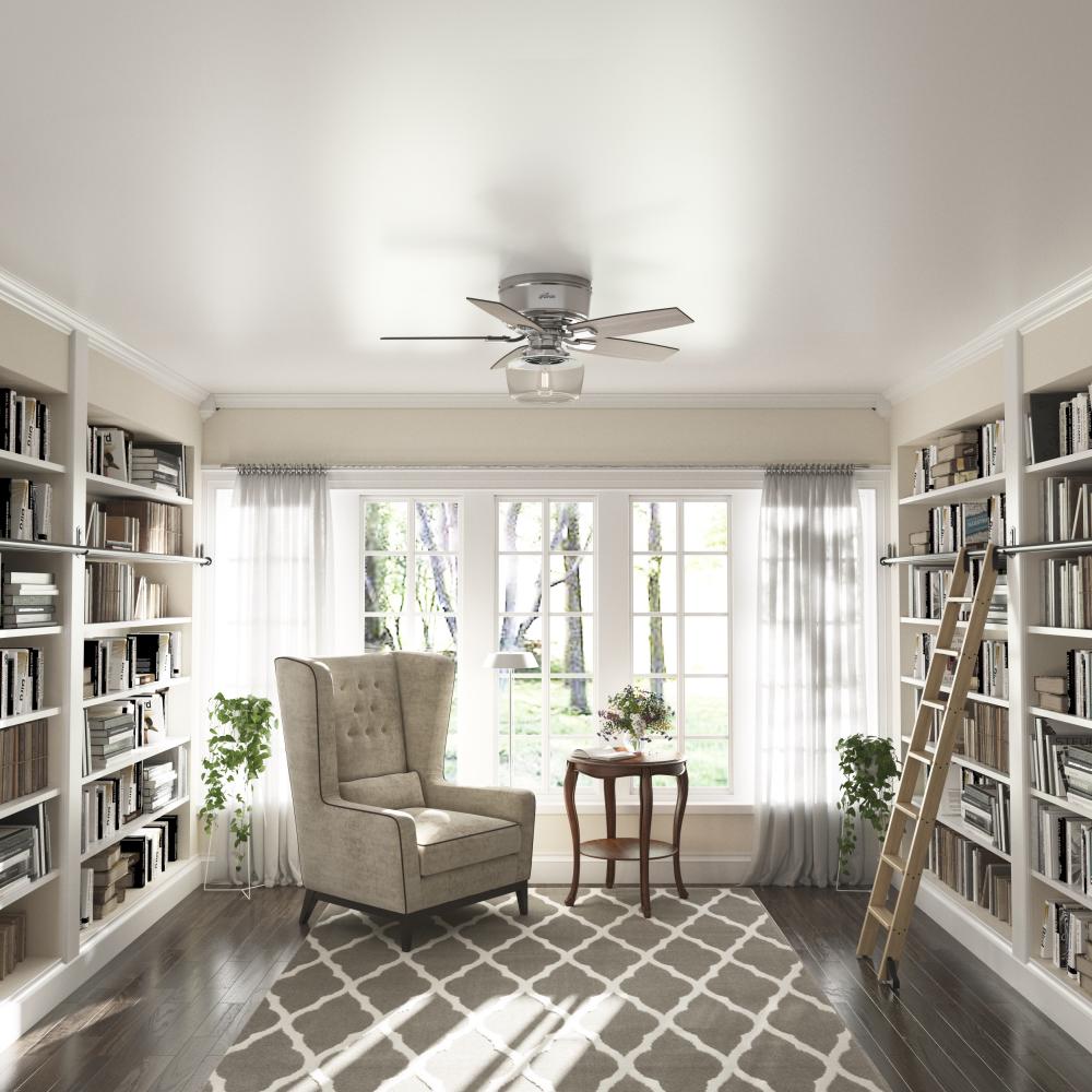 Specially designed low-profile housing fits flush to the ceiling making it ideal for use in rooms with low ceilings less than 9'