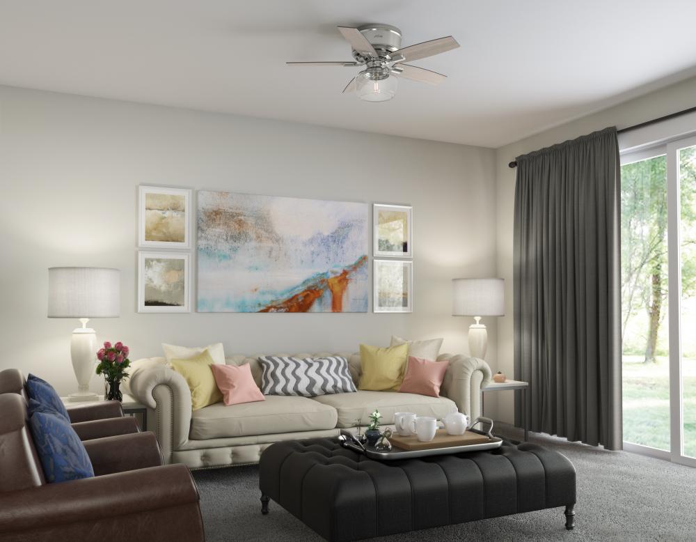 A modern take on classic ceiling fan design, the Bennett ceiling fan with LED light and handheld remote adds style to your small living spaces. The transitional design of this indoor ceiling fan makes a statement in various style rooms, from modern home offices to formal living rooms. Designed for rooms with low ceilings, the Bennett low-profile ceiling fan fits flush to the ceiling to ensure optimized airflow without sacrificing head space or style.