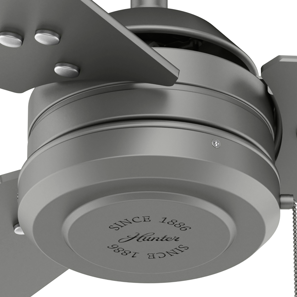 The Cassius outdoor ceiling fan is damp rated and able to withstand moisture and humidity, perfect for covered patios and porches. This ceiling fan?s clean lines and exposed hardware complement modern industrial and farmhouse style indoor spaces as well. The 44-inch blade span on this small ceiling fan is the ideal fit for guest bedrooms, home offices, and small living rooms.