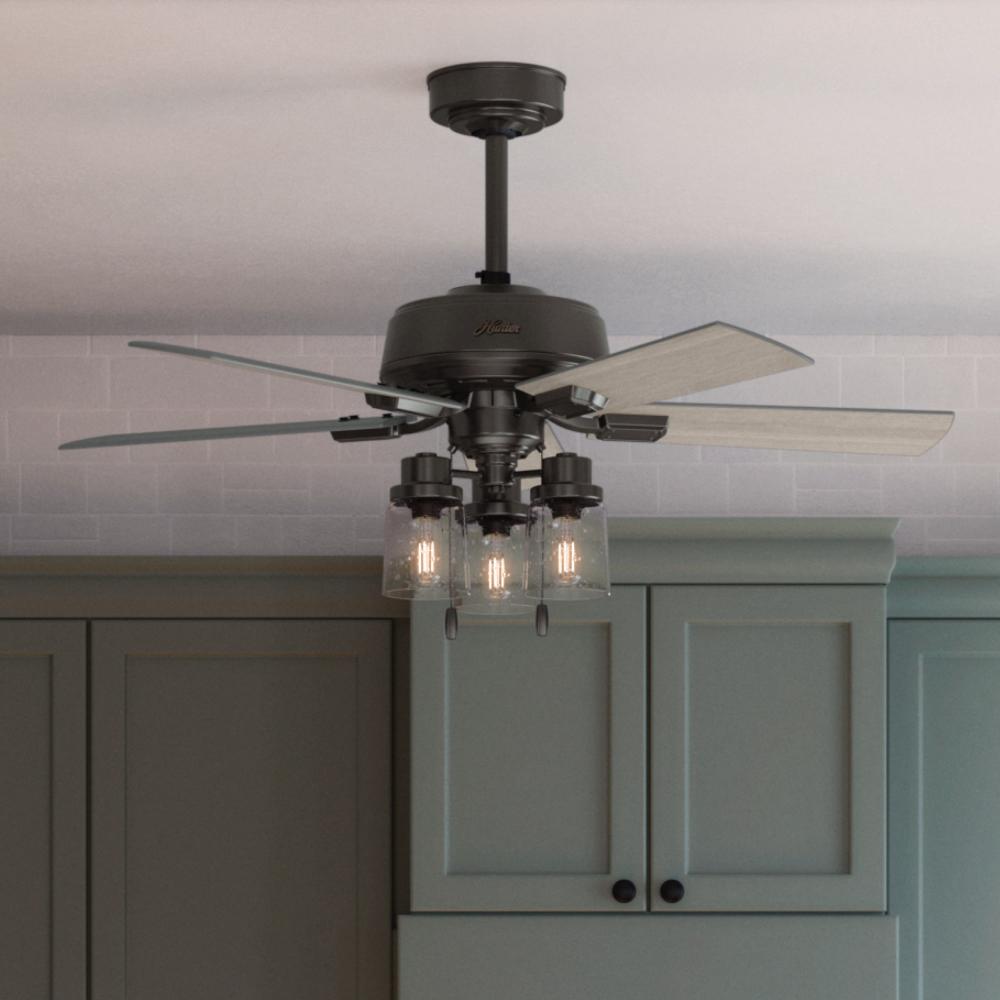 The Hartland indoor ceiling fan’s clear seeded glass and included Edison LED light bulbs create a stunning look in small, casual rooms. The Noble Bronze and Matte Silver finishes complement other fixtures in a farmhouse, and casual spaces while the Indigo Blue finish adds a subtle pop of color. Create a cohesive look in your space by pairing the Hartland ceiling fan with the coordinating light fixtures in its collection.