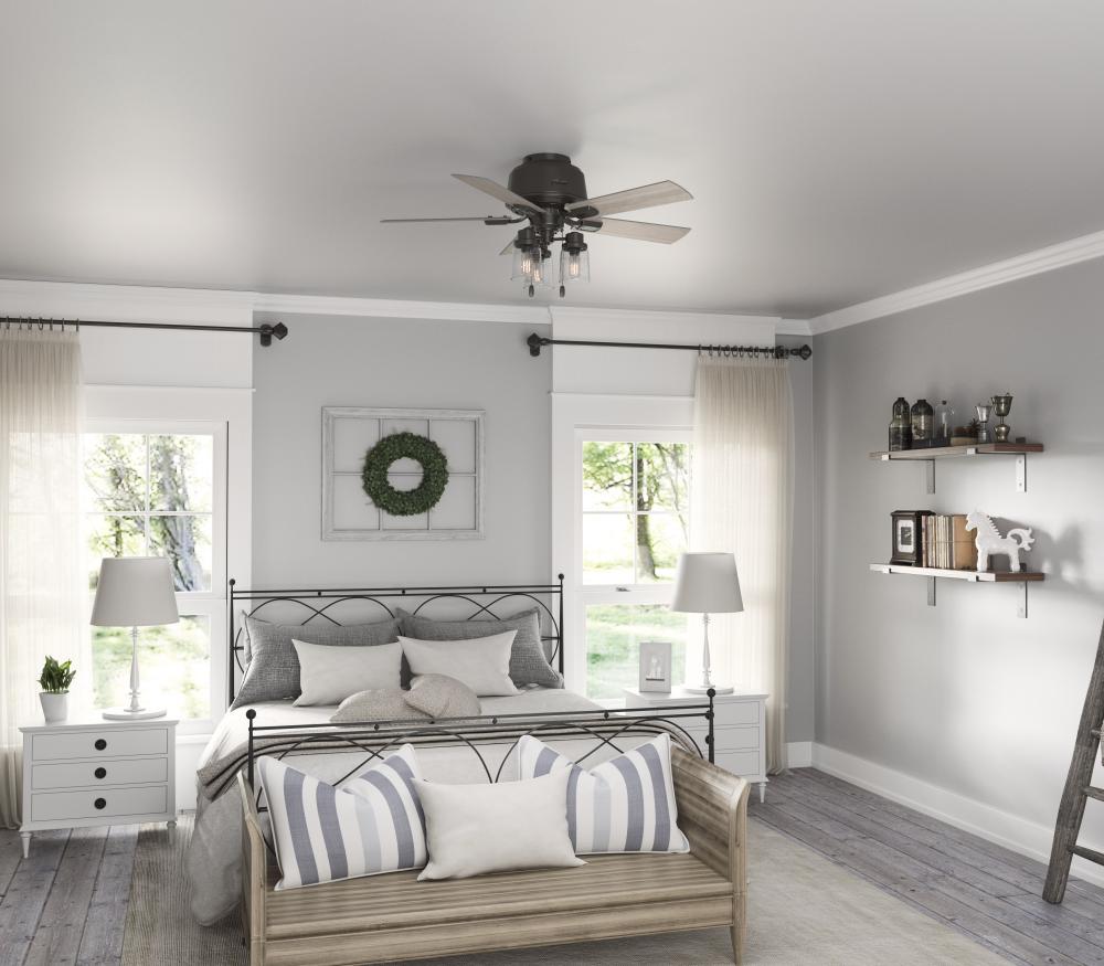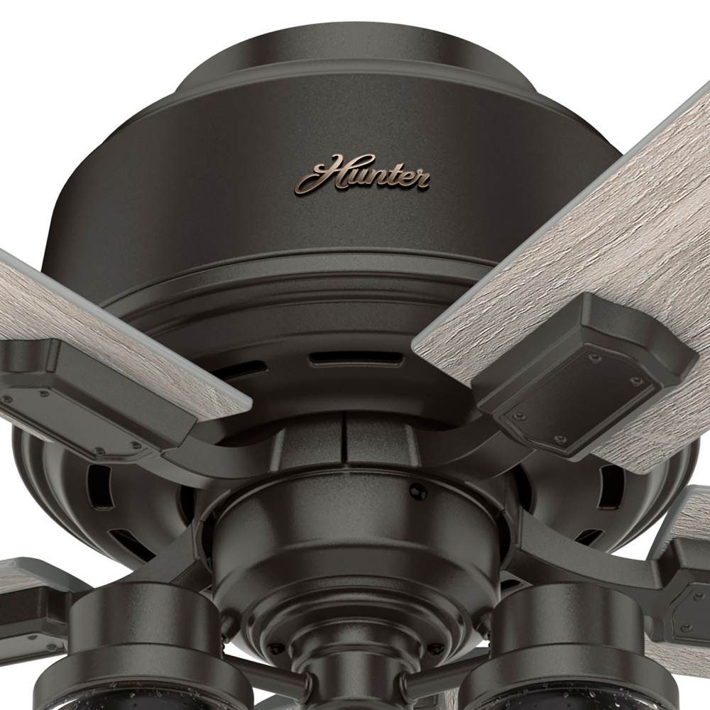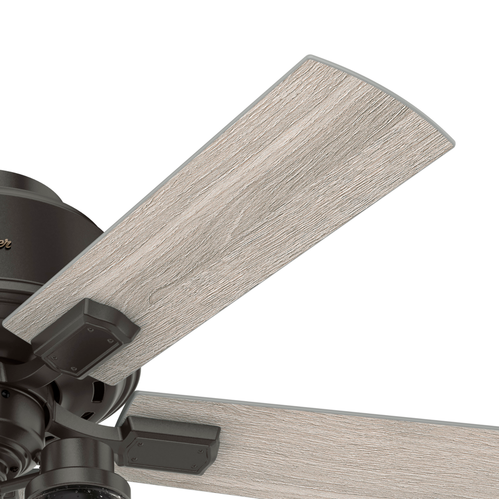 The Hartland chandelier inspired ceiling fan?s clear seeded glass and included Edison LED light bulbs create a stunning look in large spaces. The Noble Bronze and Matte Silver finishes complement other fixtures in farmhouse, casual spaces while the Indigo Blue finish adds a subtle pop of color. This indoor ceiling fan is designed to fit flush in small rooms with ceilings less than 9 feet high. Create a cohesive look in your space by pairing the Hartland ceiling fan with the coordinating light fixtures in its collection.