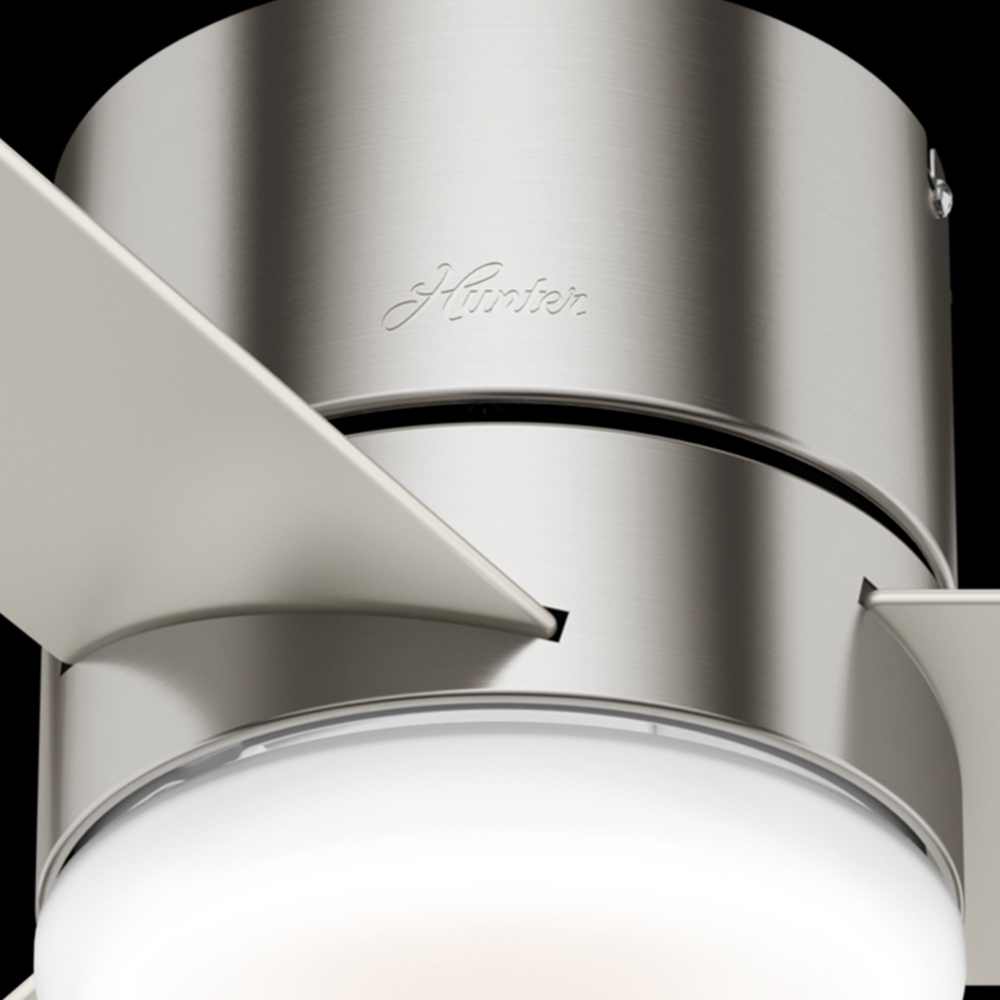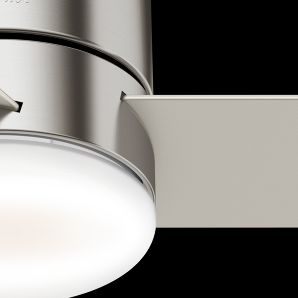 Available in three finishes, the Minimus ceiling fan's minimalist design makes it a great fit in your modern and transitional spaces. Designed to fit flush in rooms with low ceilings, this ultra-low-profile ceiling fan is perfect for small rooms with low ceiling heights. The Minimus ceiling fan boasts a three-speed WhisperWind® motor to deliver powerful, efficient airflow. You can easily control the dimmable, energy-efficient LED light and fan speeds with the included handheld remote.