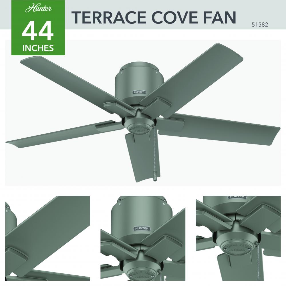 An outdoor classic meets a unique form. The 44-inch Terrace Cove brings refreshing design to outdoor ceiling fans with its sleek blades and one-of-a-kind housing. Between its modern design and SureSpeed® technology the Terrace Cove keeps your patio cool, quiet, and stylish. Perfect for small areas and low ceilings, this fan adds a finishing flair to your favorite space.
