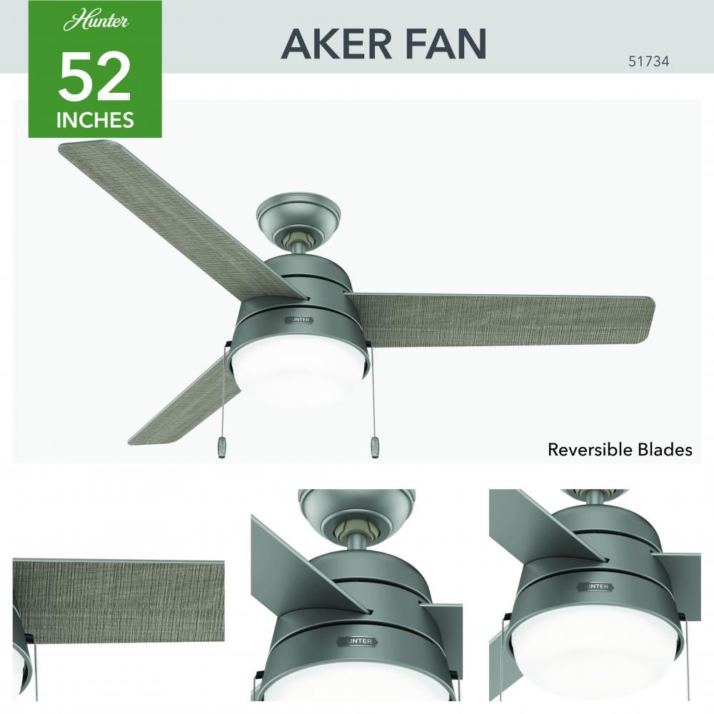 The Aker outdoor ceiling fan keeps your covered porches and patios cool and stylish. Inspired by Scandinavian modern design, its soft lines give it a transitional look that can be used in various style rooms, from Mid-Century modern to farmhouse style. The included pull chains make it easy to control your fan and fan light functions. The Aker is available in a variety of finishes, sizes, and in indoor and outdoor ratings, letting you create a cohesive style throughout your home.