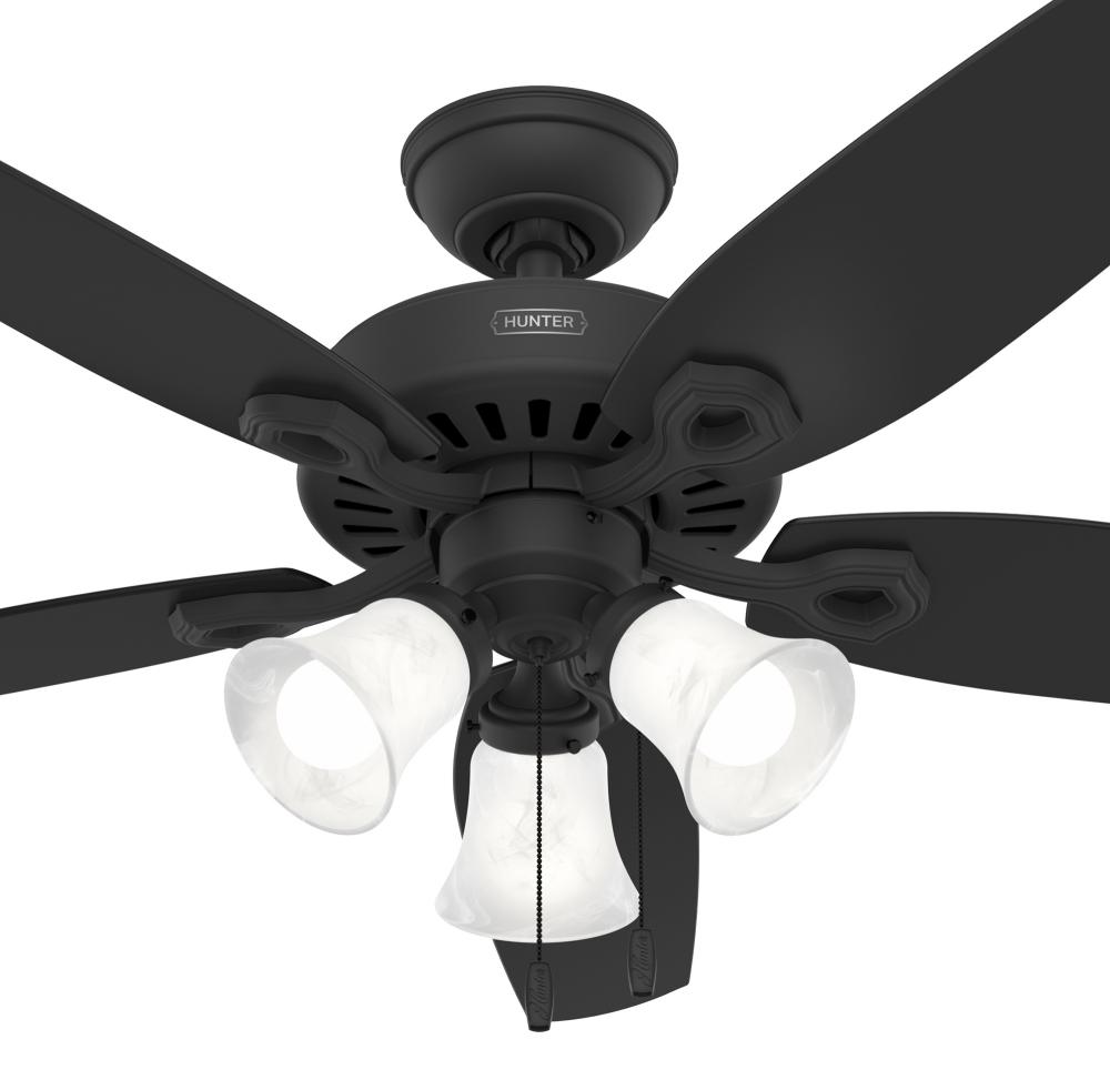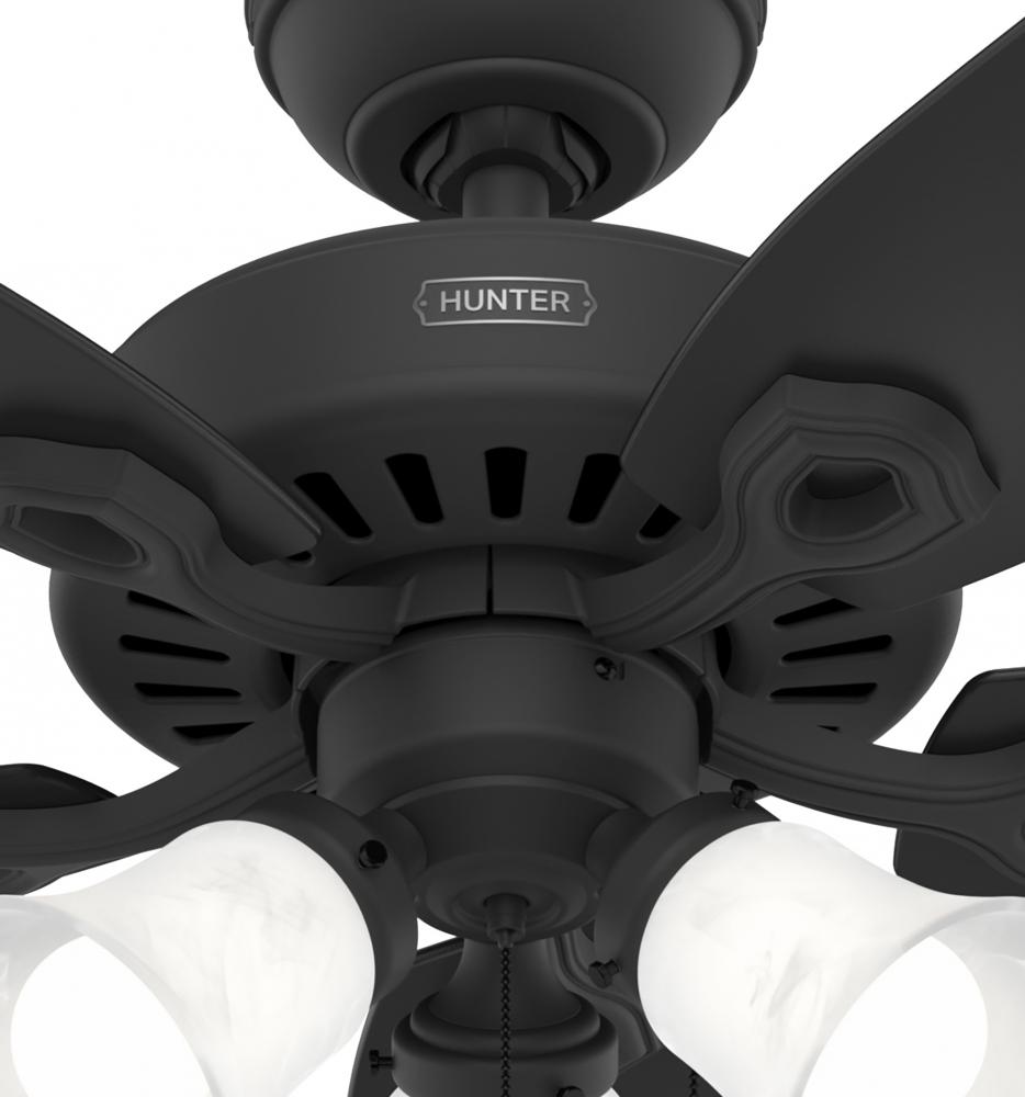 A mainstay in the Hunter collection of fans, the casual, traditional design of the Builder classic ceiling fan with light complements your rooms without overpowering them. The Builder fan includes three LED light bulbs to help illuminate your large indoor rooms like bedrooms and living rooms. Featuring WhisperWind® motor technology, it delivers the quiet, ultra-powerful air performance you expect from a ceiling fan. Available in a variety of finishes and sizes, use the Builder Collection to create a cohesive look throughout your home.