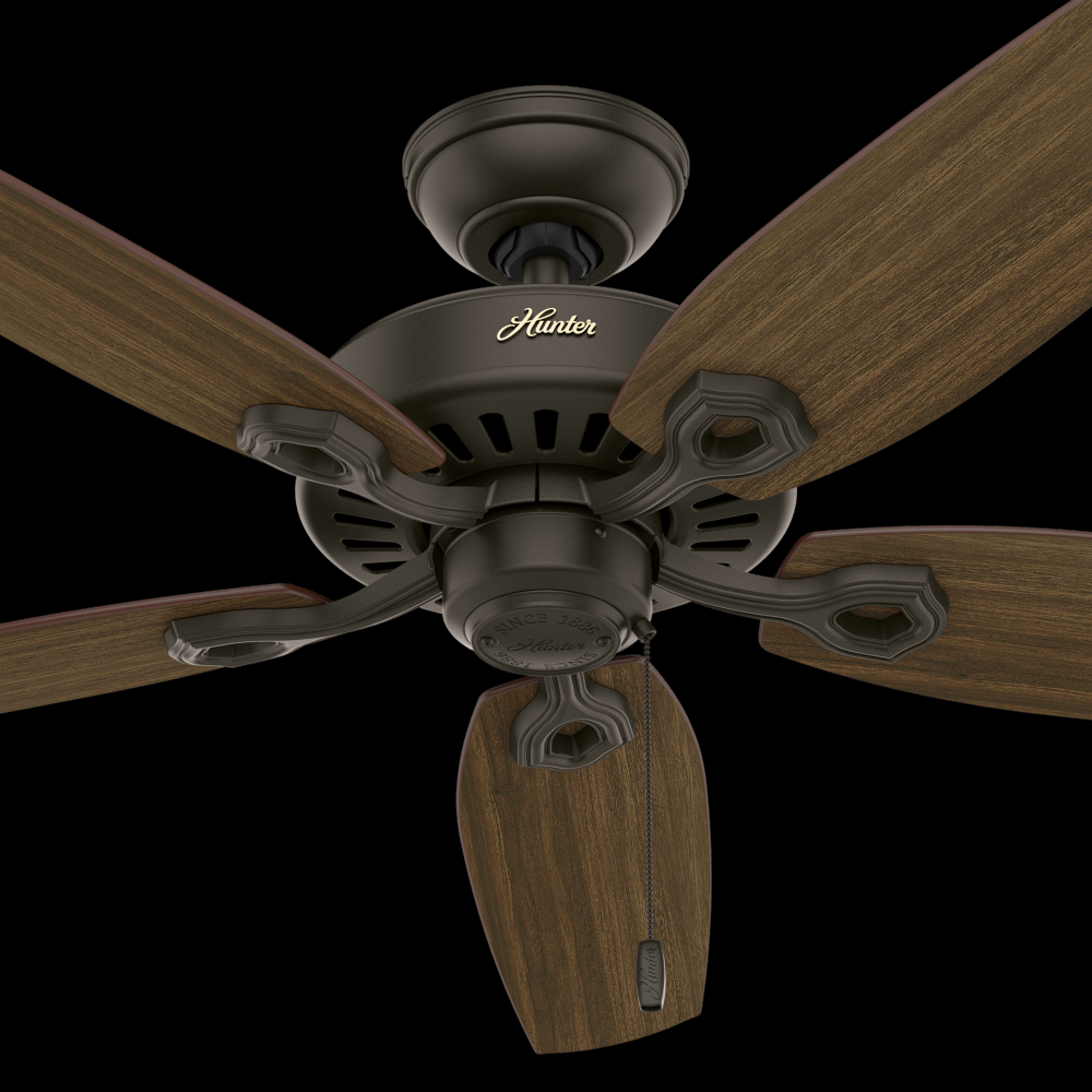 With a 52-inch blade span and four finishes to choose from, the casual, traditional style of the Builder Elite will complement standard or large rooms in your home without overpowering them. A mainstay in the Hunter® product line, these ceiling fans without lights feature three-speed WhisperWind® motor technology to deliver quiet and ultra-powerful performance.