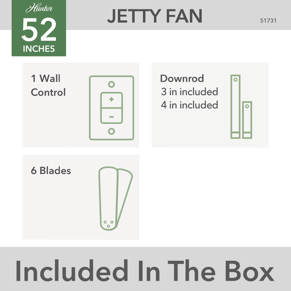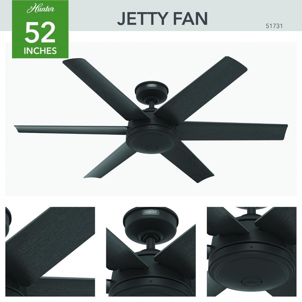 Rainy days are when the Jetty shines. As a part of our WeatherMax? Collection, the Jetty outdoor ceiling fan is Engineered for the Elements?, whether it?s a lakeside thunderstorm or humid beach day. This modern ceiling fan maintains is shape no matter the weather and continues delivering its SureSpeed? optimized, high-speed performance.