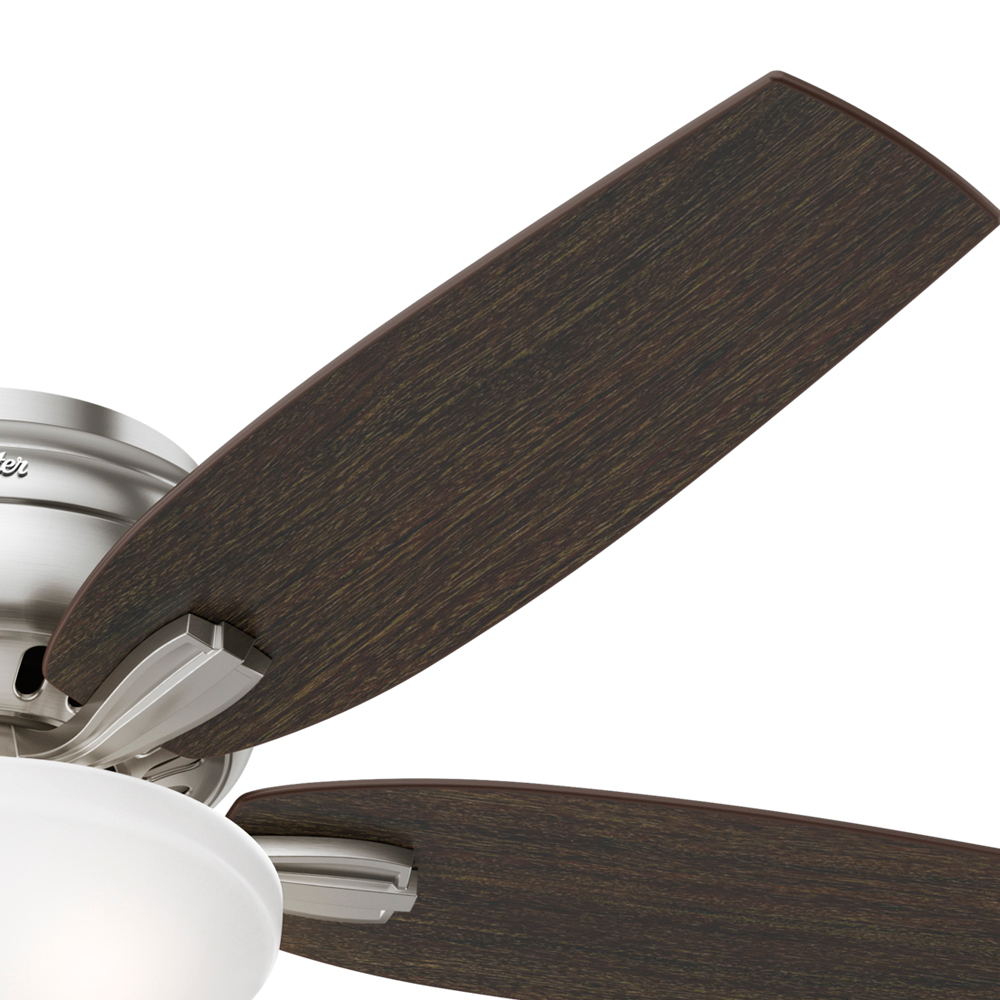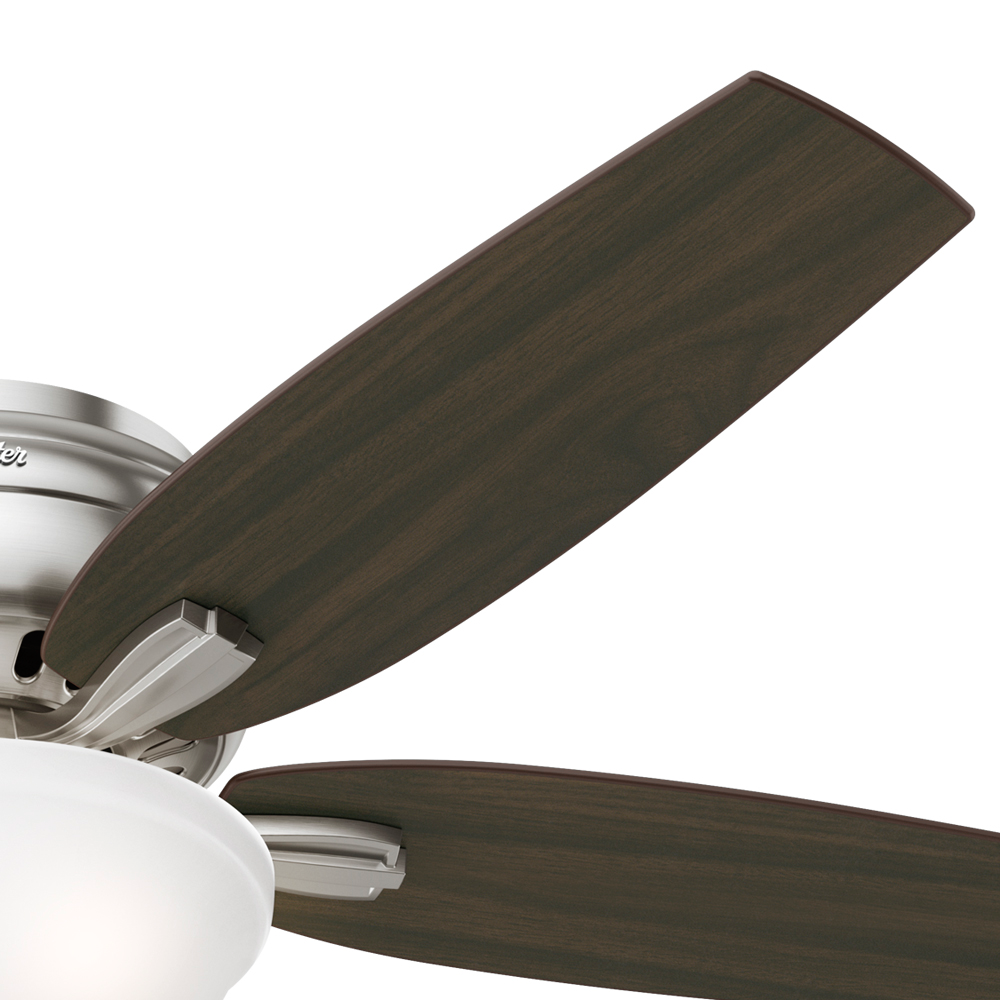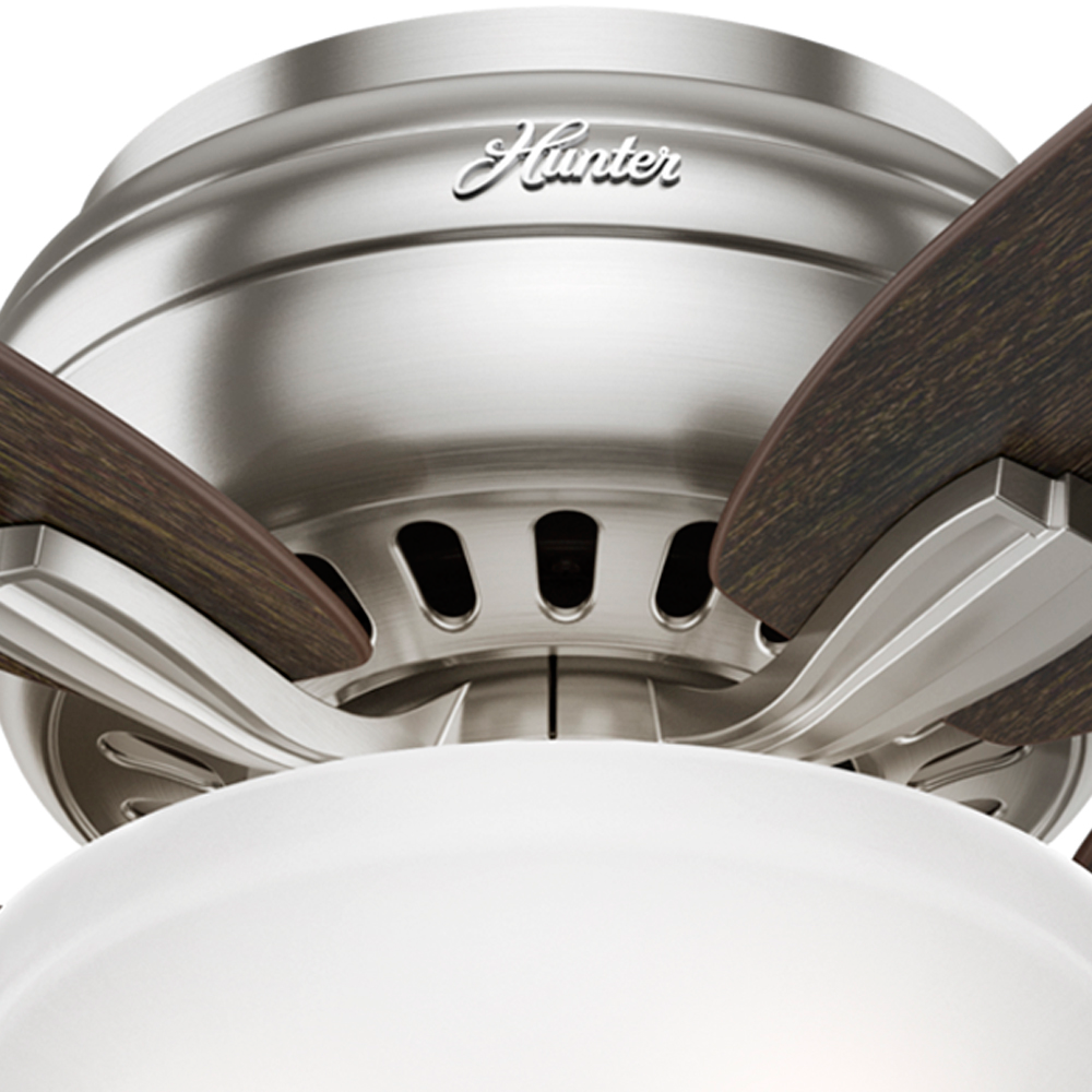 With its charming appearance, the Newsome low-profile ceiling fan with light will complement your casual design style. The clean line details throughout the fan body and blade irons work together to create a coherent design that will fit any standard or large room with a low ceiling. The handsome bowl light fixture provides your ideal ambiance while the 52-inch blades are powered by a three-speed WhisperWind® motor delivering superior air movement and whisper-quiet performance so you get all the cooling power you want without the noise. The Newsome Collection offers you the freedom to choose from many different sizes, light kits, and other options to maintain a consistent look throughout every room in your home.