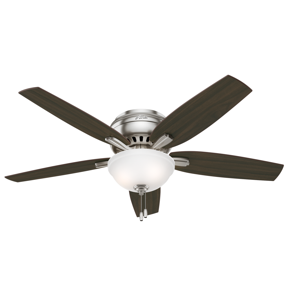 With its charming appearance, the Newsome low-profile ceiling fan with light will complement your casual design style. The clean line details throughout the fan body and blade irons work together to create a coherent design that will fit any standard or large room with a low ceiling. The handsome bowl light fixture provides your ideal ambiance while the 52-inch blades are powered by a three-speed WhisperWind? motor delivering superior air movement and whisper-quiet performance so you get all the cooling power you want without the noise. The Newsome Collection offers you the freedom to choose from many different sizes, light kits, and other options to maintain a consistent look throughout every room in your home.