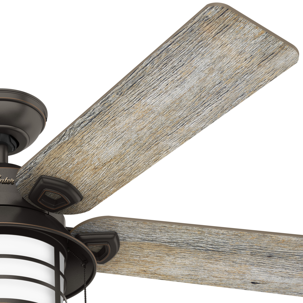 Outfitted with a blade finish reminiscent of aged beachwood, rustic weathered finishes and a lantern-style light kit, the Key Biscayne brings a touch of the Maritimes to your space. Perfect for any room or covered area exposed to moisture and humidity, this damp-rated fan includes stainless steel hardware and will fit nicely in your large, outdoor sunroom or patio's beach house decor. The Key Biscayne features reversible blades powered by a three-speed WhisperWind? motor to deliver ultra-powerful air movement with whisper-quiet performance.