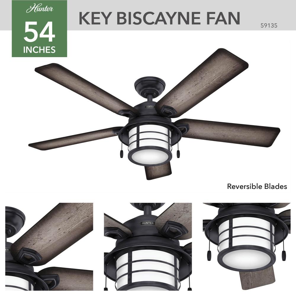 Hunter 59135 - Hunter 54 inch Key Biscayne Weathered Zinc Damp Rated Ceiling Fan with LED Light Kit and Pull Chain