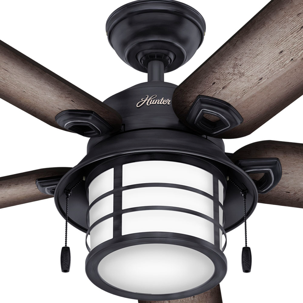 Hunter 59273 - Hunter 54 inch Key Biscayne Onyx Bengal Damp Rated Ceiling Fan with LED Light Kit and Pull Chain