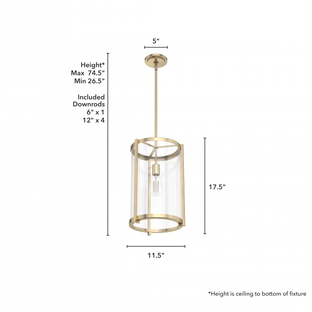 CUSTOMIZABLE HANGING OPTIONS: With the minimum required downrod, the hanging length is 26.5 inches. When using all of the included downrod, the maximum hanging length is 74.5 inches.