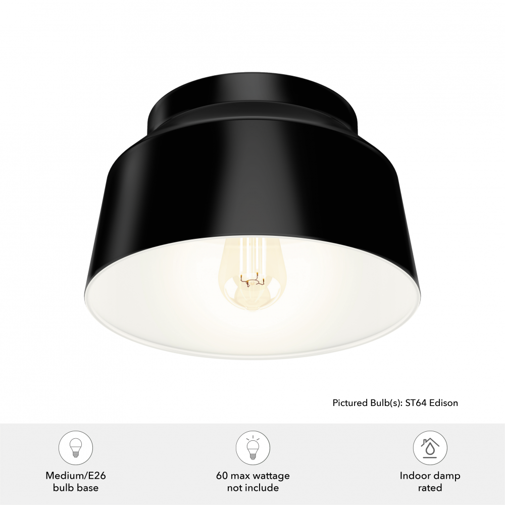 Just the right touch of vintage for your space. Inspired by mid-century design and current influences, the Cranbrook mid-century modern flush mount light touts a unique hooded light available in a variety of neutral finishes and pops of color. For those who like to coordinate, this flush mount light matches our Cranbrook ceiling fan collection.