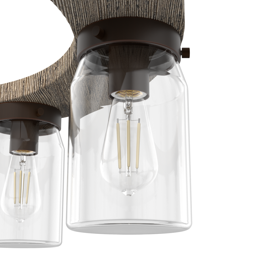 Simply charming, the Devon Park round chandelier’s rustic wood finishes and ball jar-inspired glass shades create a look perfect for rustic and farmhouse-style spaces. This chandelier provides an opportunity for ample lighting. The warm glow from Edison LED bulbs creates a welcoming ambiance in your space. Mix and match with other fixtures from this collection or from our ceiling fan designs.