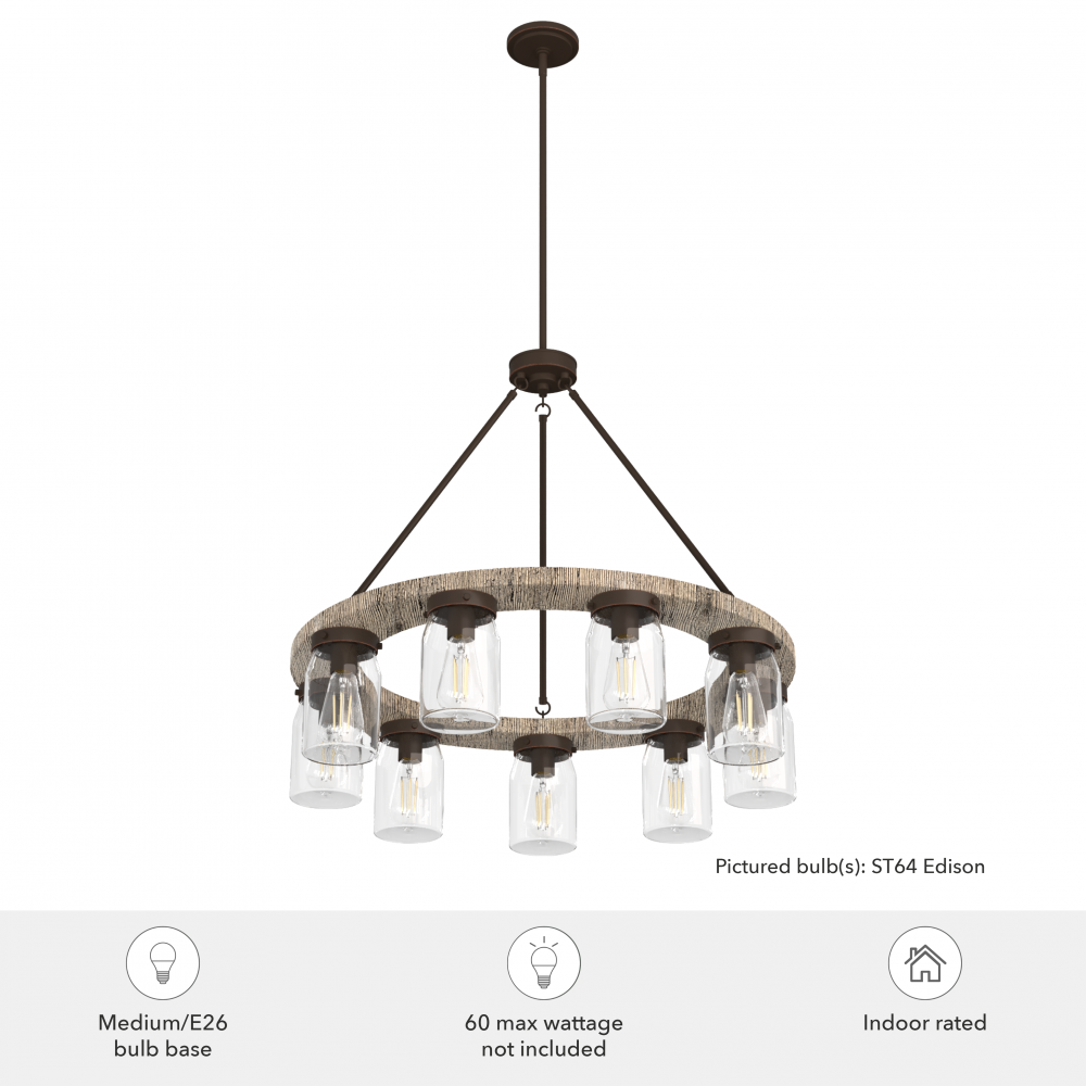 Illuminate your space with this charming chandelier. Reminiscent of a rustic wagon wheel, the Devon Park round chandelier brings farmhouse spaces to life. This round fixture creates a dimensional look with its distressed finishes and clean, ironwork detailing. Complement the chandelier by layering it with other fixtures from the Devon Park ceiling fan and lighting collections to create a cohesive look in your space.
