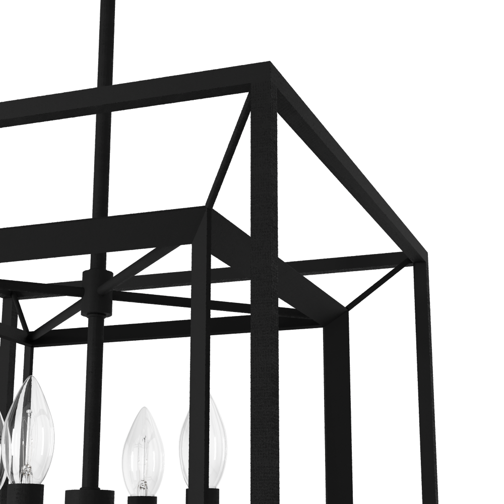 Brighten up your space with a warm glow with the Doherty lantern pendant. A mixture of modern elegance and casual comfort, The Doherty combines bold design, clean lines, and warm illumination of candle-like bulbs that appear to float. This elegant pendant will match seamlessly with your decor. Mix and match with other fixtures from this collection or from our ceiling fan designs.