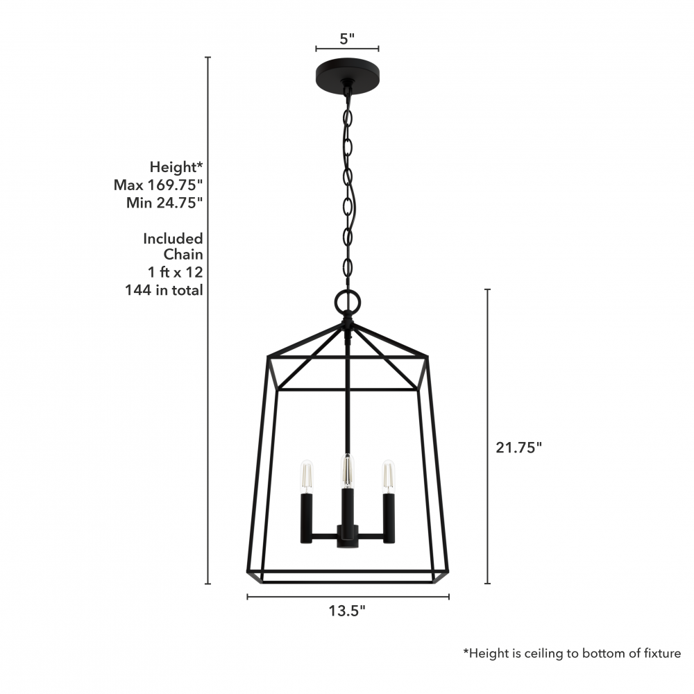 CUSTOMIZABLE HANGING OPTIONS: With the minimum required cord, the hanging length is 24.75 inches. When using all of the included extensions, the maximum hanging length is 169.75 inches.