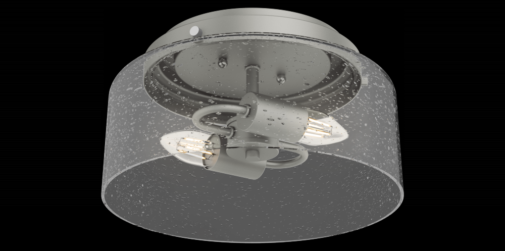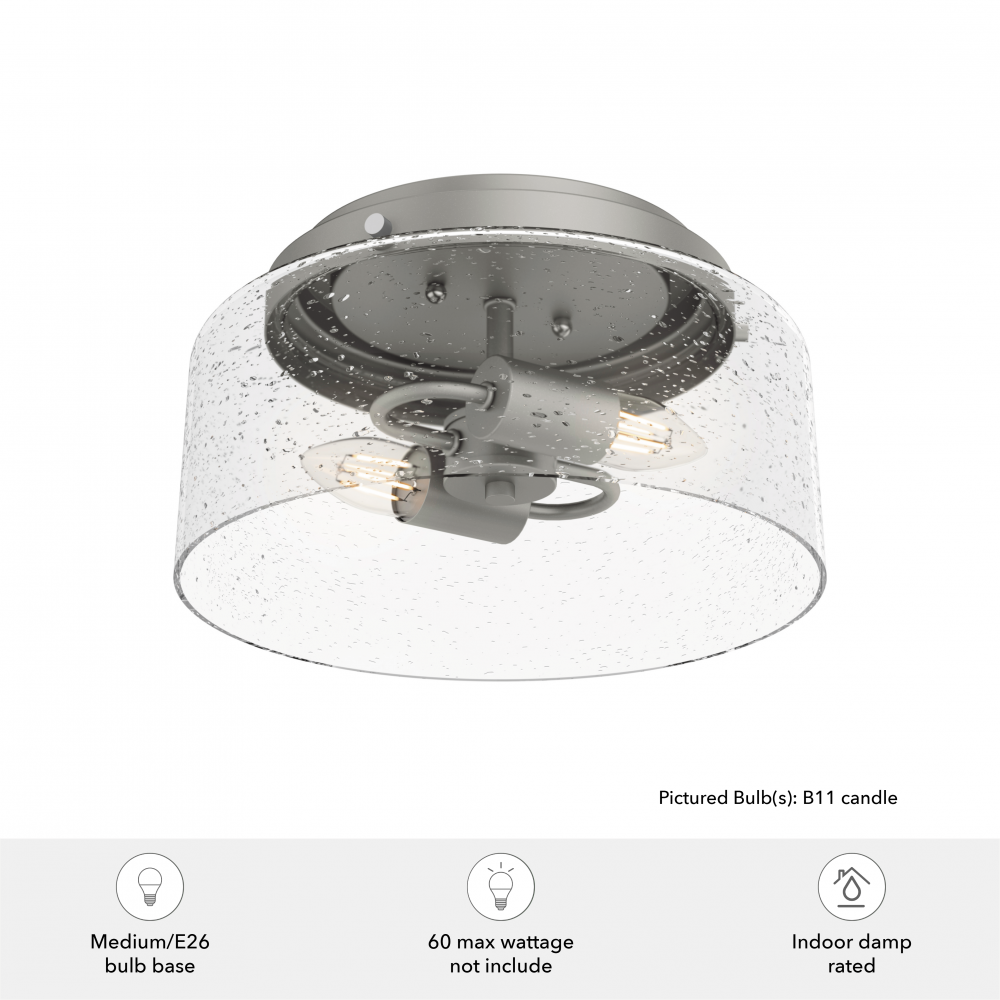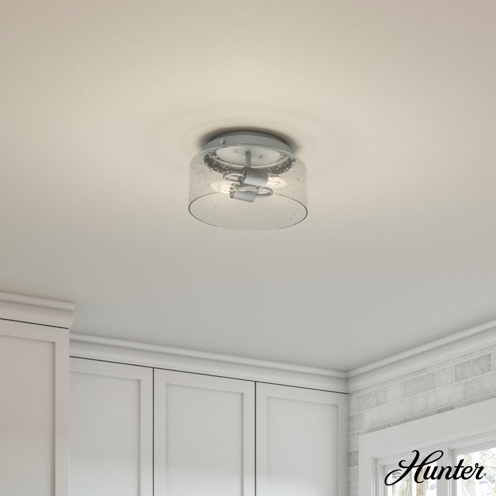 Hunter Hartland Matte Silver with Seeded Glass 2 Light Flush Mount Ceiling Light Fixture