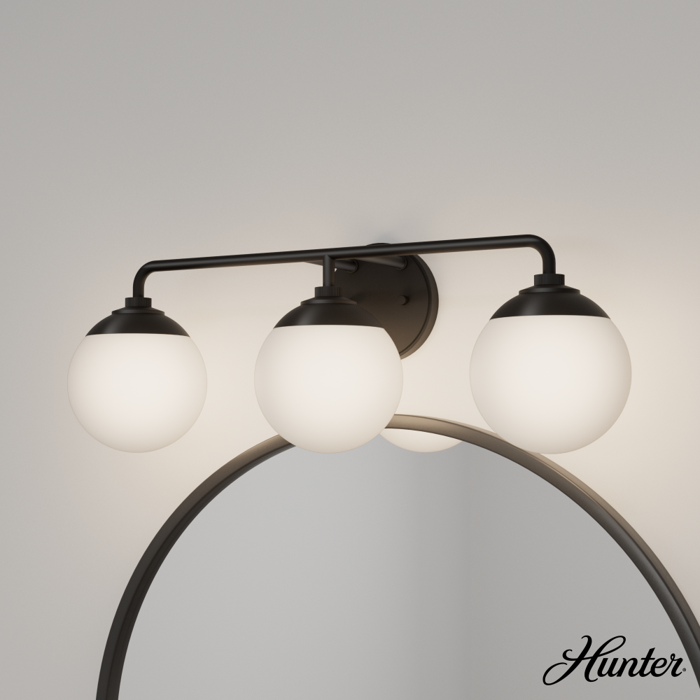 Bathroom lighting is fit for a Hollywood star. The Hepburn modern wall sconce blends the grandness of 1920 theaters with the retro, geometric forms of mid-century modern design. Get the 'Gatsby glow' over your mirror and transport through time to shine. The perfect addition to our popular Hepburn Collection. Mix and match with fans from our ceiling fan collections to fully finish your space.