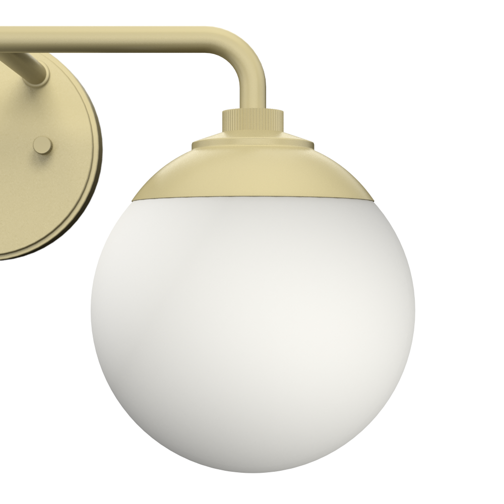 Big style for small spaces. The Hepburn modern vanity light blends the grandness of 1920 theaters with the retro, geometric forms of mid-century modern design. A simple design with beautiful finishes and a cased white glass – the simplest things can make the biggest impact. Mix and match with other fixtures from this collection or from our ceiling fan designs.