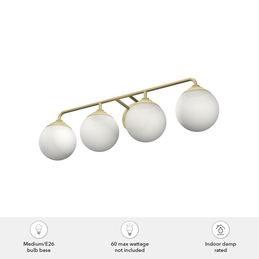 Lighting to make you feel like a movie star – no filter needed. The Hepburn modern 4-light vanity light blends the grandness of 1920 theaters with the retro, geometric forms of mid-century modern design. The cased white glass diffuses the light just enough to create the perfect glow to illuminate your bathrooms.