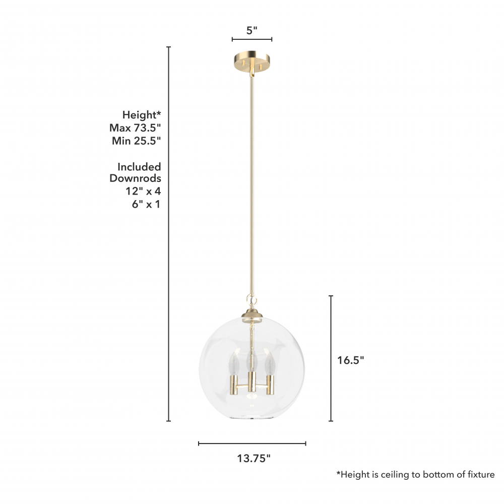 CUSTOMIZABLE HANGING OPTIONS: With the minimum required downrod, the hanging length is 25.5 inches. When using all of the included downrod, the maximum hanging length is 73.5 inches.