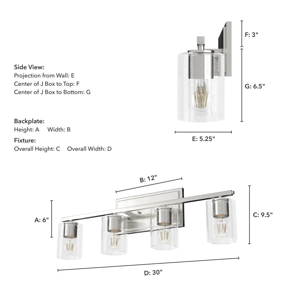 Sconce/Vanity Center of J Box to Bottom: