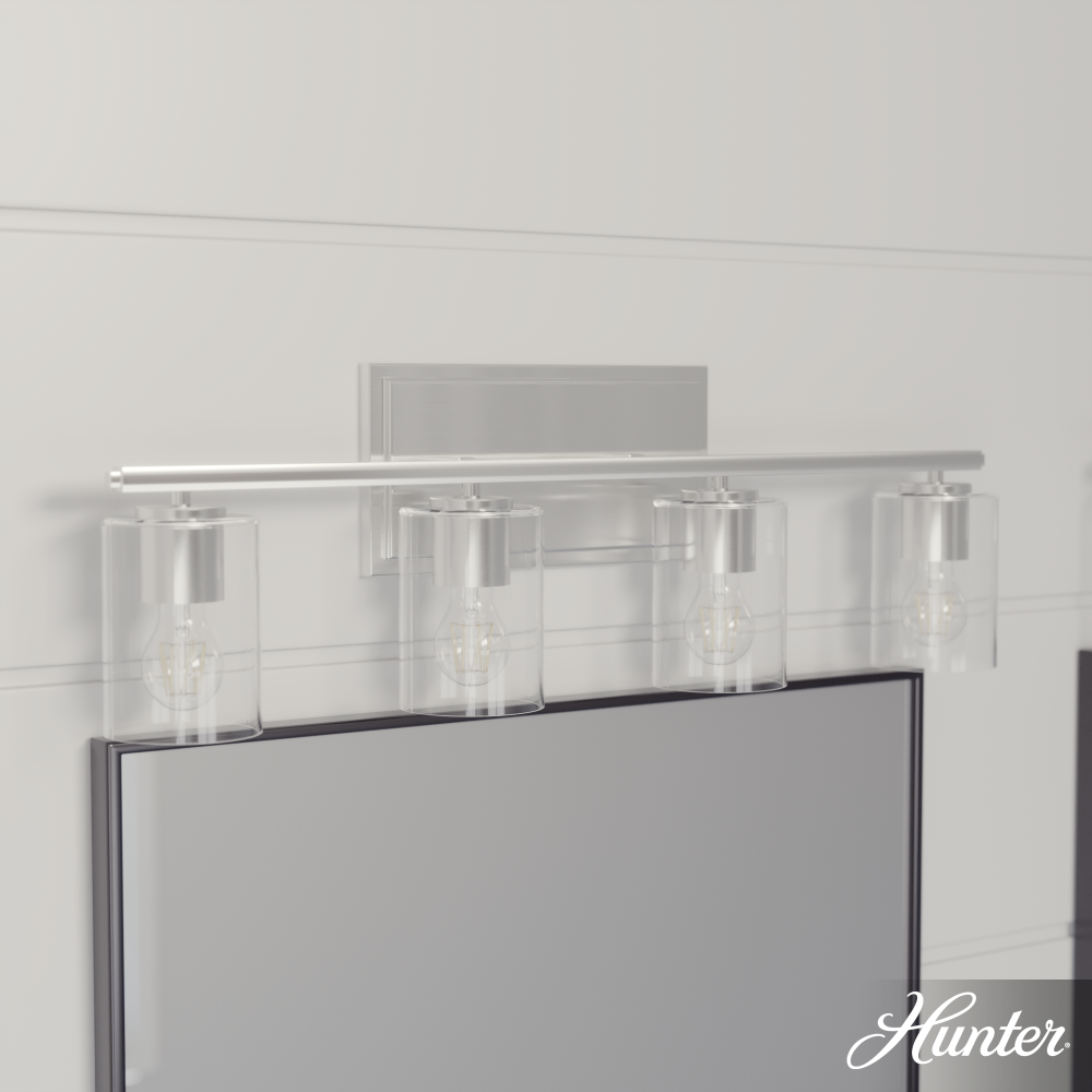 Modern meets warmth with the Kerrison vanity, designed to dress up any bathroom. The fixture’s industrial aesthetic and simple geometry are balanced by soft light shining through clear, seeded glass. Damp-rated to withstand moisture and humidity, the Kerrison vanity offers the just-right amount of light to glow up your space. Mix and match with other fixtures from this collection or from our ceiling fan designs.