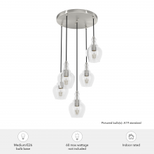 Hunter Maple Park Brushed Nickel with Clear Glass 5 Light Pendant Cluster Ceiling Light Fixture (407UNMR)
