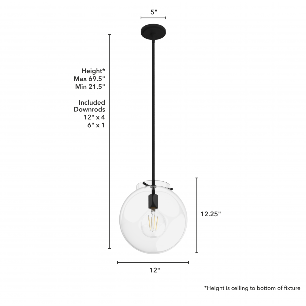 CUSTOMIZABLE HANGING OPTIONS: With the minimum required downrod, the hanging length is 21.5 inches. When using all of the included downrod, the maximum hanging length is 69.5 inches.