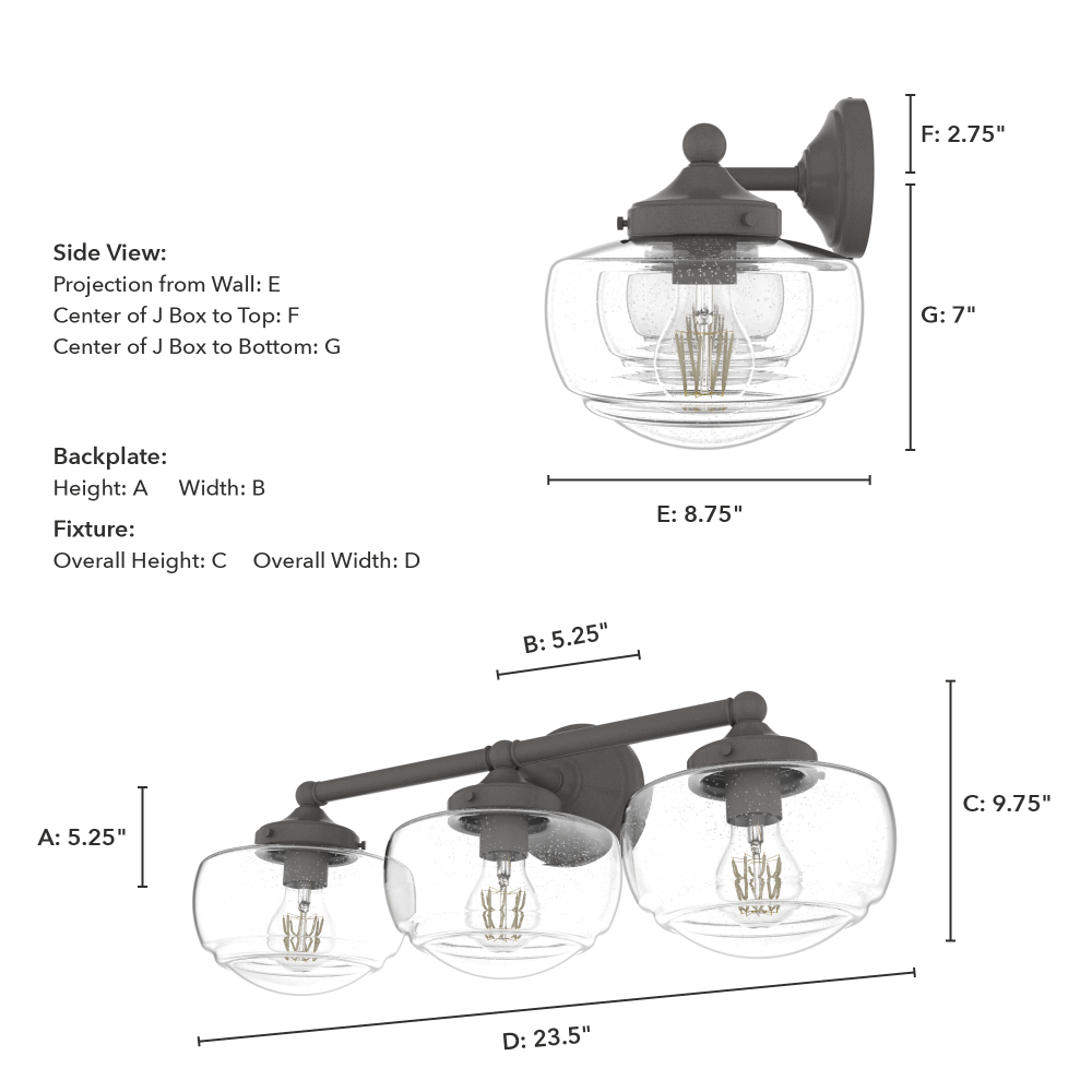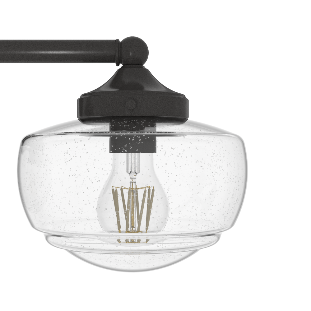 Introduce a vintage element to your vanity with the Saddle Creek fixture, inspired by the iconic American schoolhouse light. This vanity lighting will reflect a warm glow that illuminates subtle detailing within the glass. The Saddle Creek’s simple metal finish and fittings lend a subtlety to the light’s sophisticated style. Mix and match with other fixtures from this collection or from our ceiling fan designs.