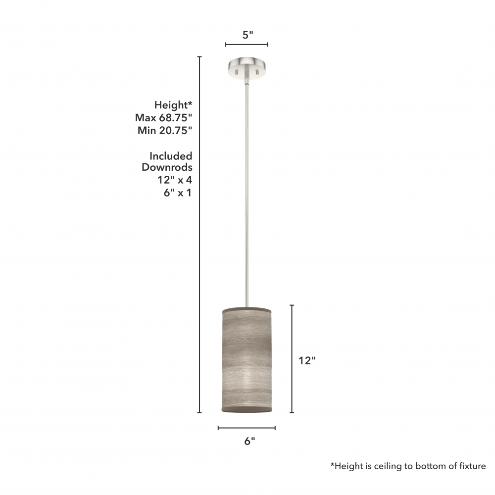 CUSTOMIZABLE HANGING OPTIONS: With the minimum required downrod, the hanging length is 20.75 inches. When using all of the included downrod, the maximum hanging length is 68.75 inches.