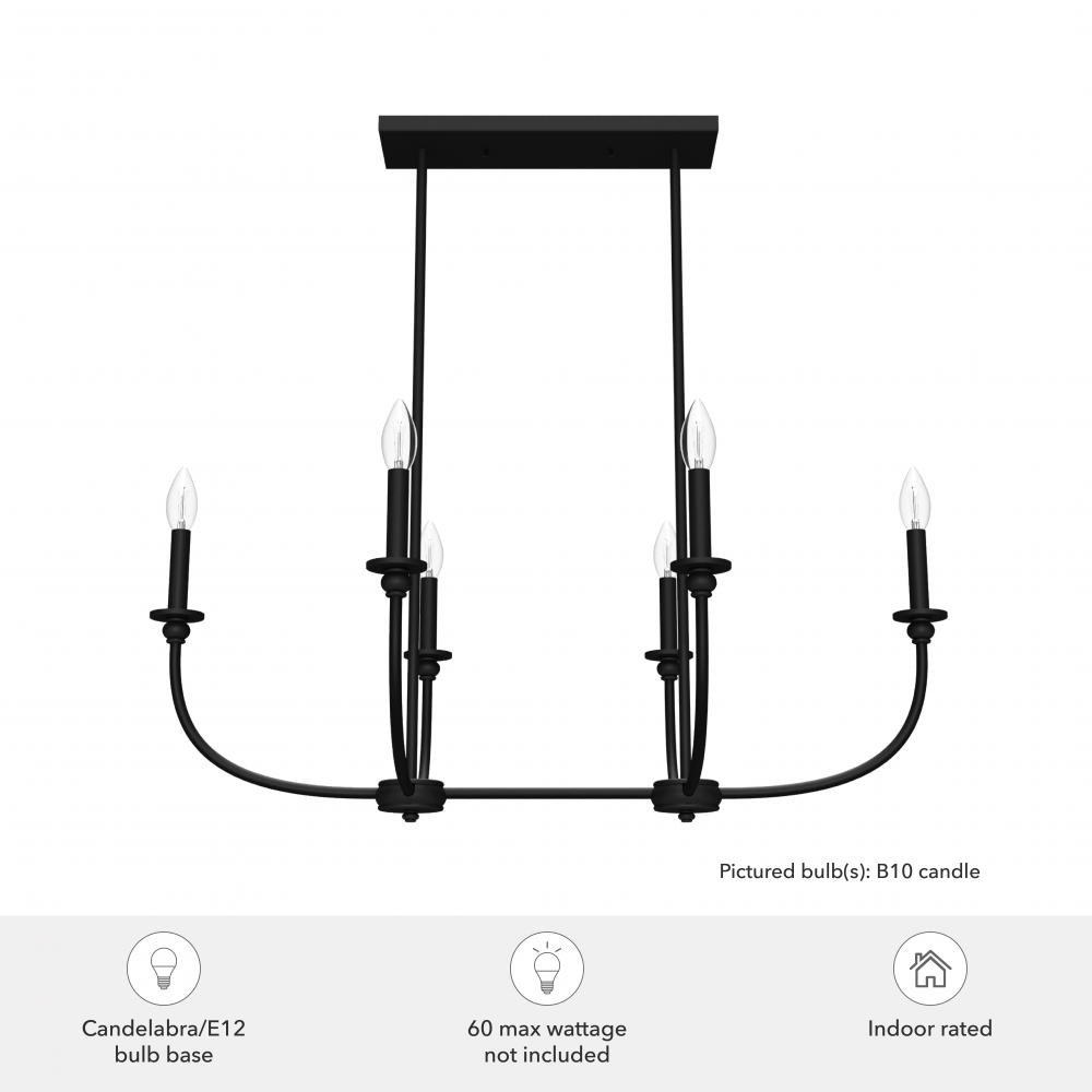 Requires 6 E12 bulbs. Bulbs not included.