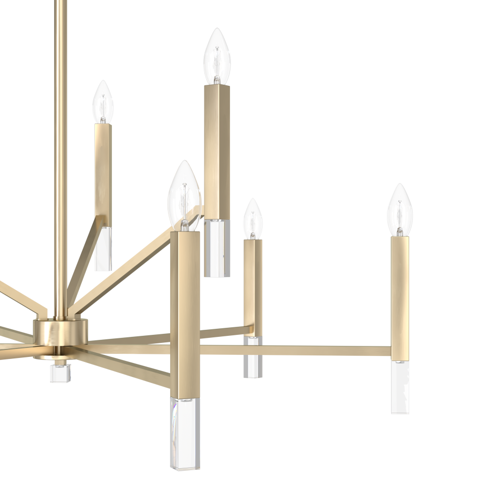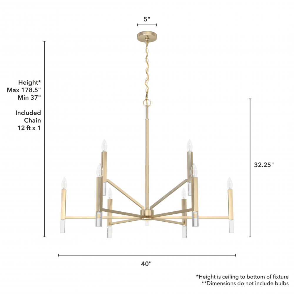 Uplift your home’s lighting aesthetic with the Sunjai tiered chandelier, featuring nine individual lights that evoke the classic glow of a candelabra, with a modern edge. The Sunjai’s casual geometry is offset by elegant shimmering adornments at the base of each light and the fixture’s overarching clean, modern design, adding a touch of glam. Brighten up gatherings with the Sunjai tiered chandelier.